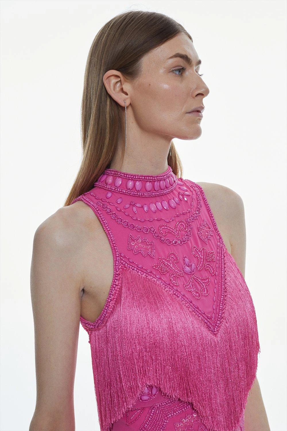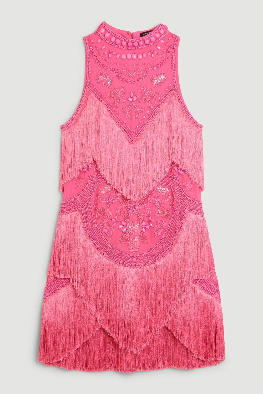 Karen Millen Fringe And Beaded Halter Neck Mini Dress