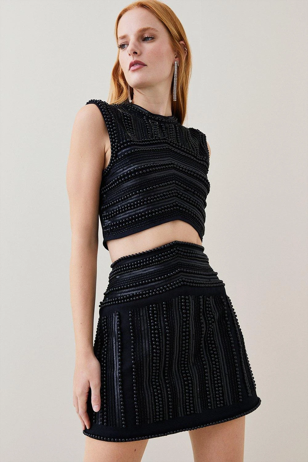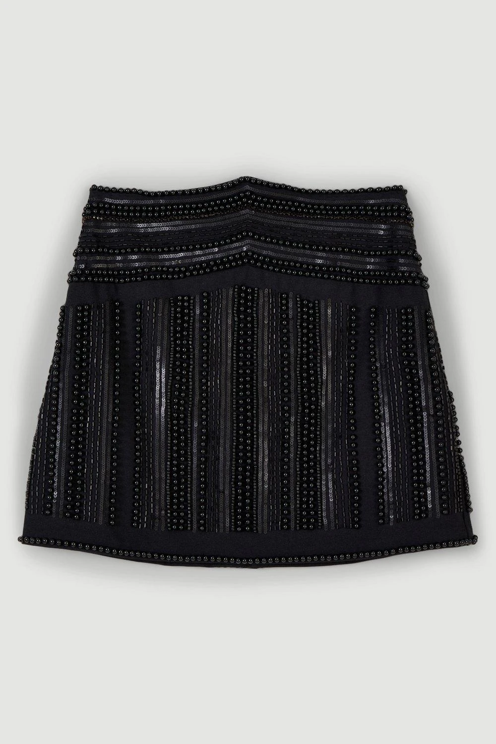 Nodding to the decadence of the Roaring ‘20s with new-found modernity, this mini skirt scintillates with a lustrous embellished finish. Pair with the matching bralette for a considered take on contemporary, cohesive styling.