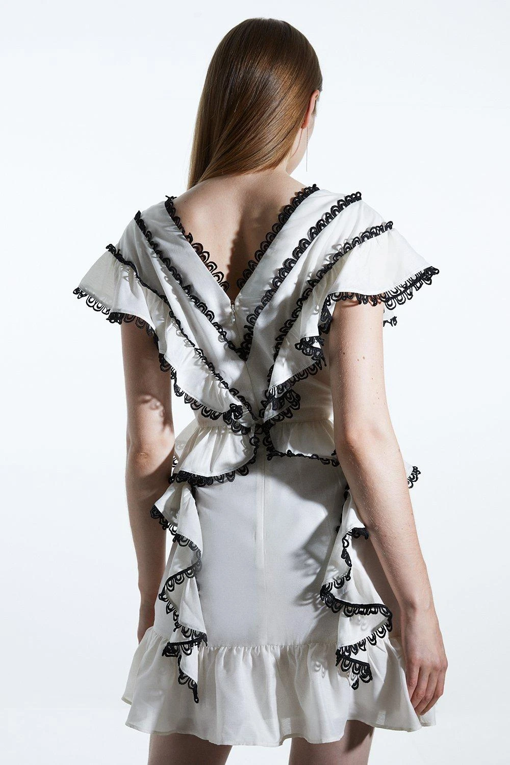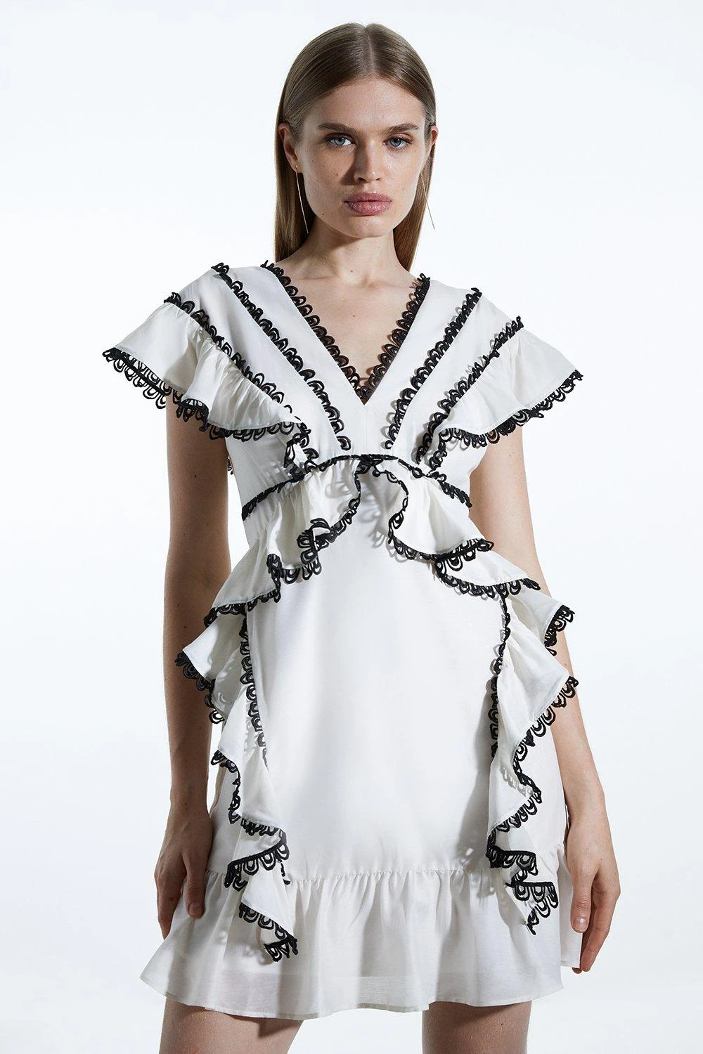 Karen Millen Graphic Lace Trim Woven Mini Dress