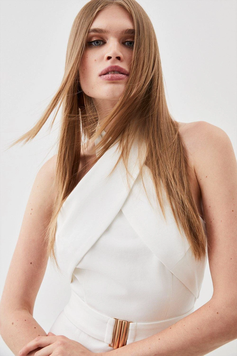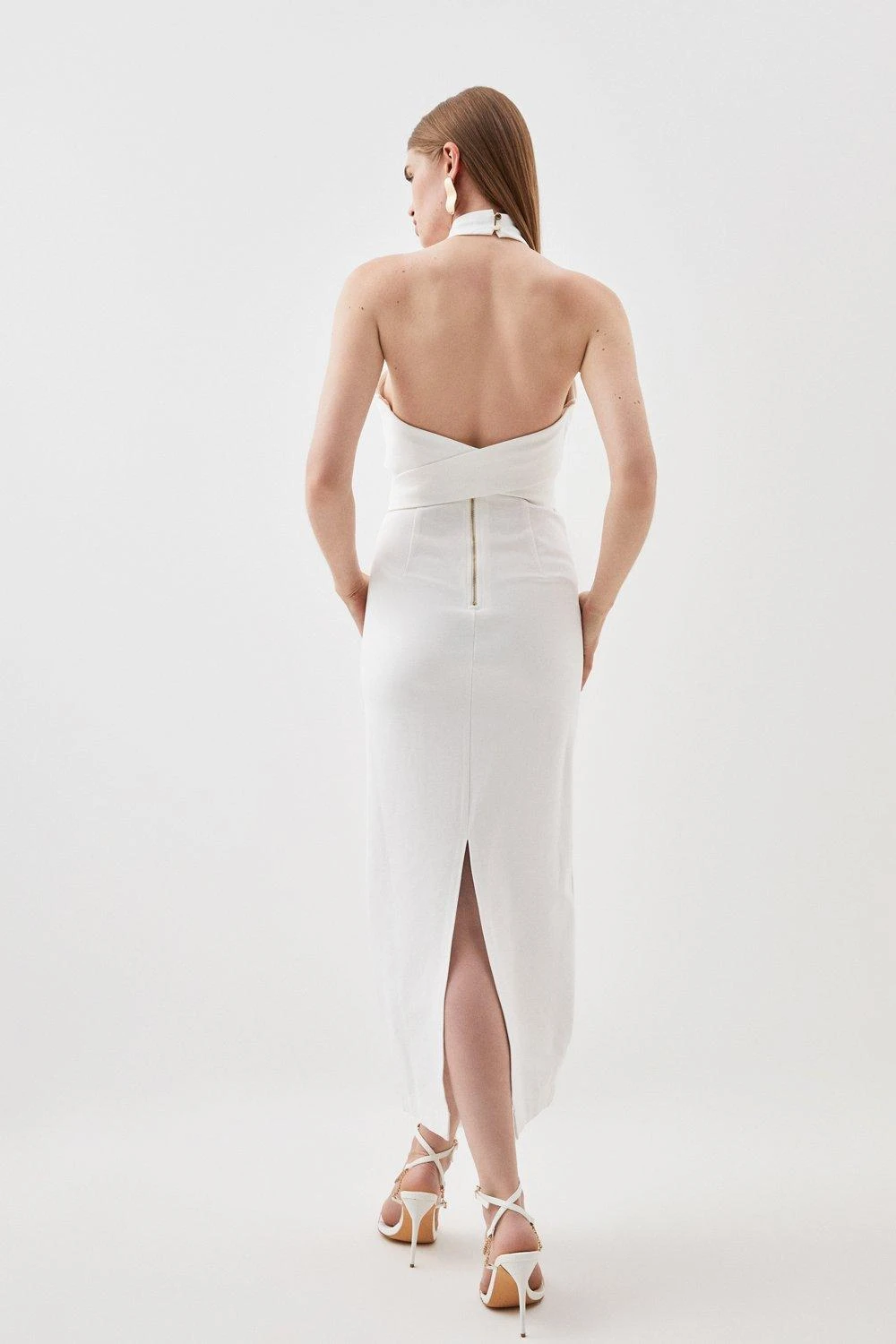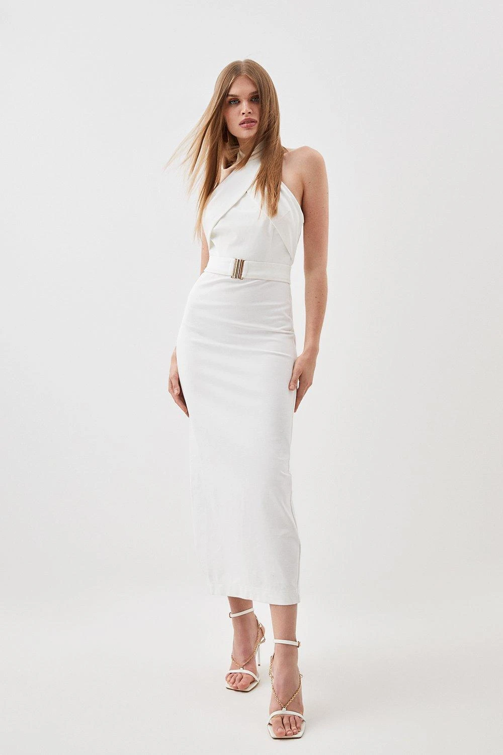 Karen Millen Halterneck Belted Ponte Midi Dress