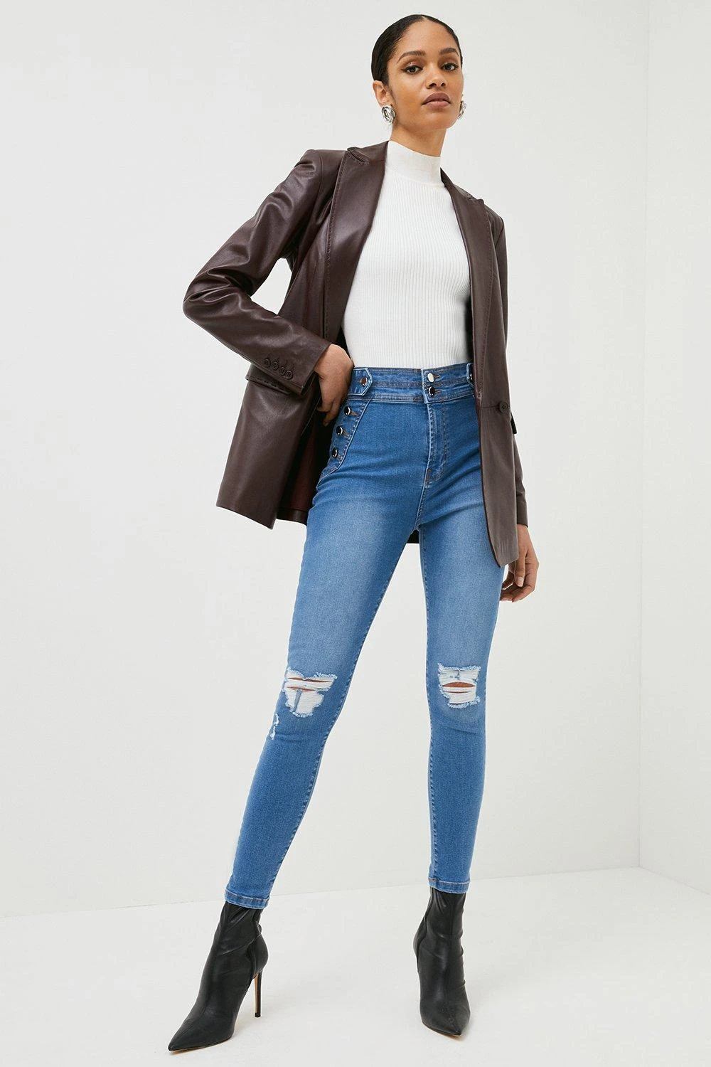 It’s all in the details when it comes to these must-have skinny jeans. Featuring a high, buttoned waistband to cinch in your figure, they always offer a flattering foundation. The sleek, straight-leg fit exudes a timeless feel that works well, whatever the season.