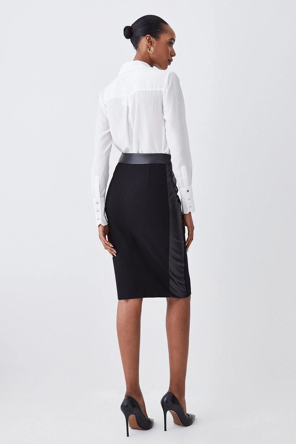 MAIN:67% VISCOSE 28% POLYAMIDE 5% ELASTANEÂ CONTRAST:55% POLYURETHANE 45% POLYESTER. Model wears UK 8/US 4. Model height 5″9