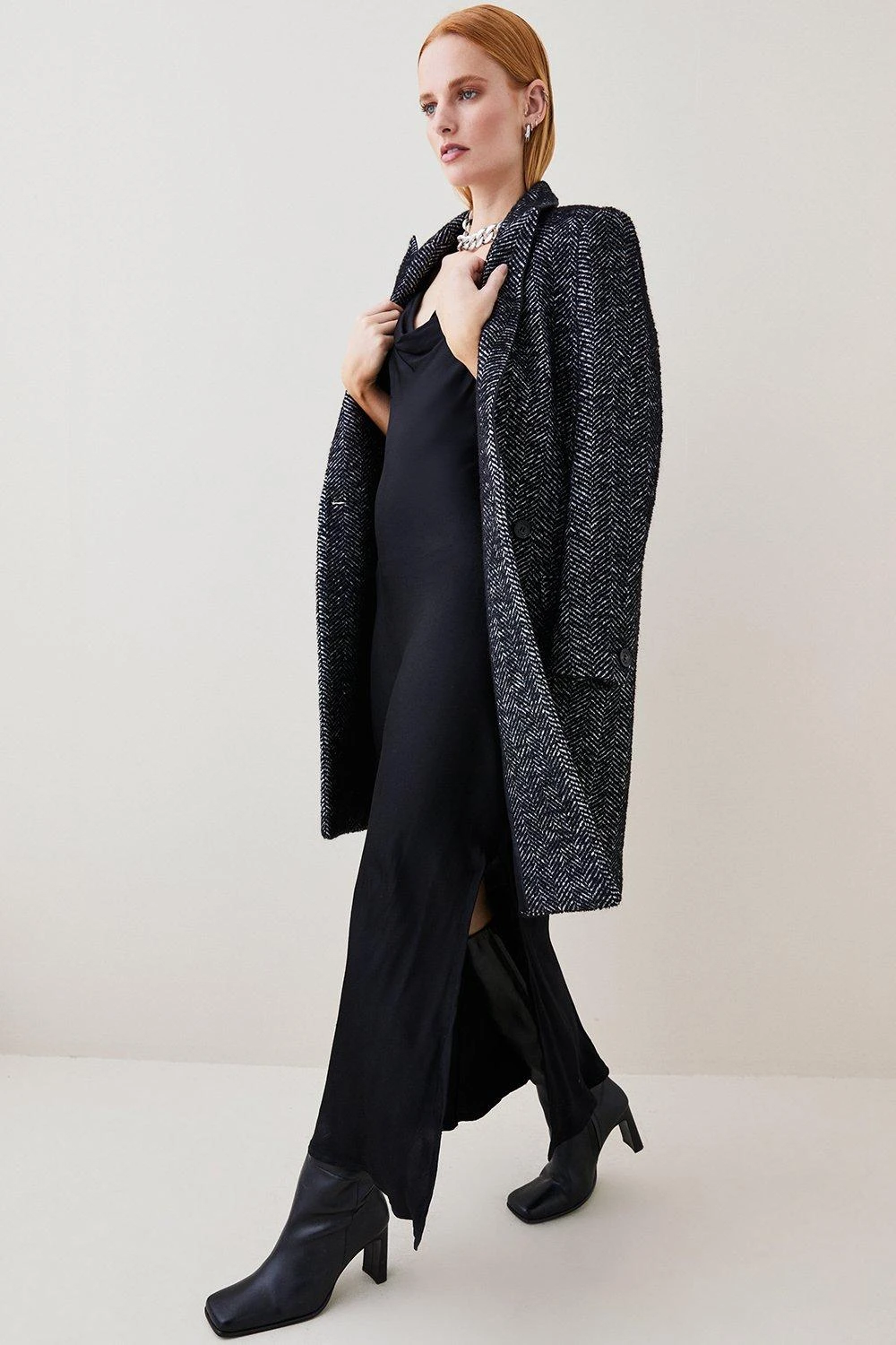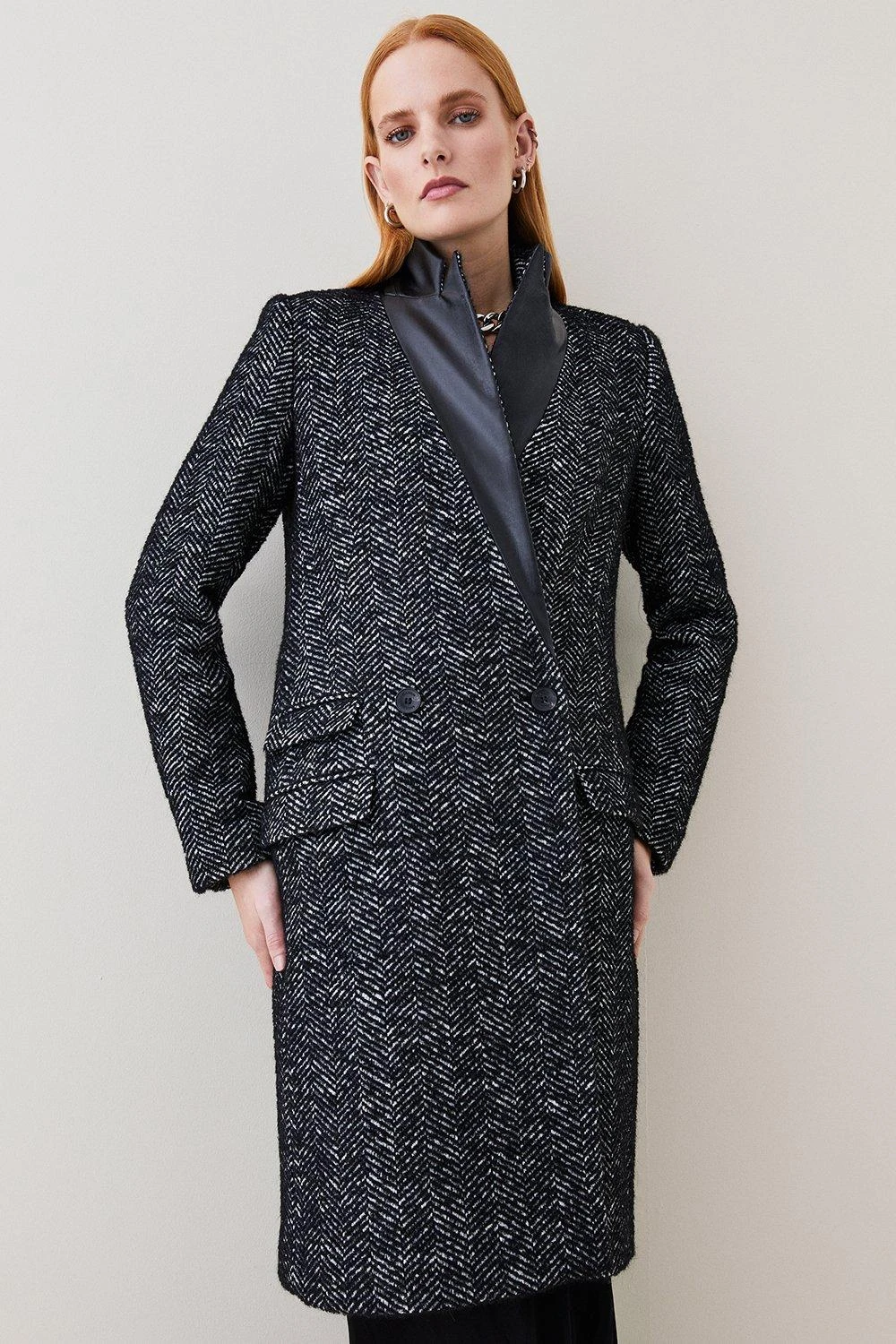 Main: 34% Wool, 28% Polyacrylic, 28% Polyester, 2% Polyamide. Excluding trims: 100% Polyester. Dry clean only. Model wears UK 8/US 4. Model height: 5″9. Length measurement: 102cm.