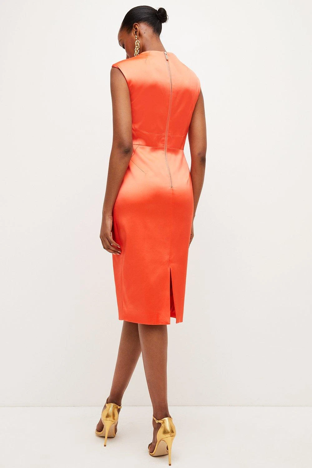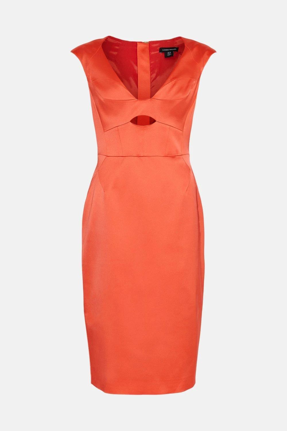 Bring a sense of Old Hollywood glamour to sun-drenched events in this beautifully cut Italian satin midi dress. A style that would suit the shores of Capri or Positano, it shows off an elegant pencil silhouette, demure knee-length hem and flirtatious front cut-out framing the bust. Thick shoulder straps and an exposed back zip lend polished appeal to this undeniably glamorous piece.