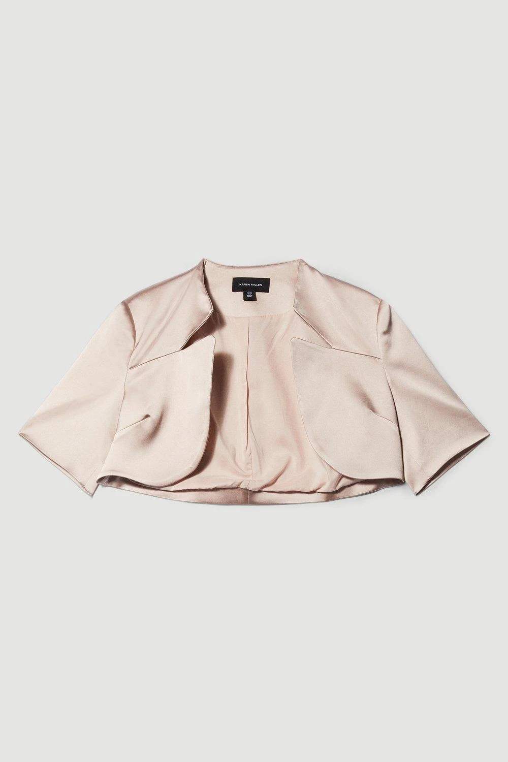 Crafted from sumptuous Italian satin for an elevated feel, this cropped jacket provides a sophisticated finishing touch to any occasion ensemble. A notch neck adds sharp proportions, while a cropped cut gives a contemporary touch. Style this piece with the co-ordinating satin pencil dress for a truly elegant look.