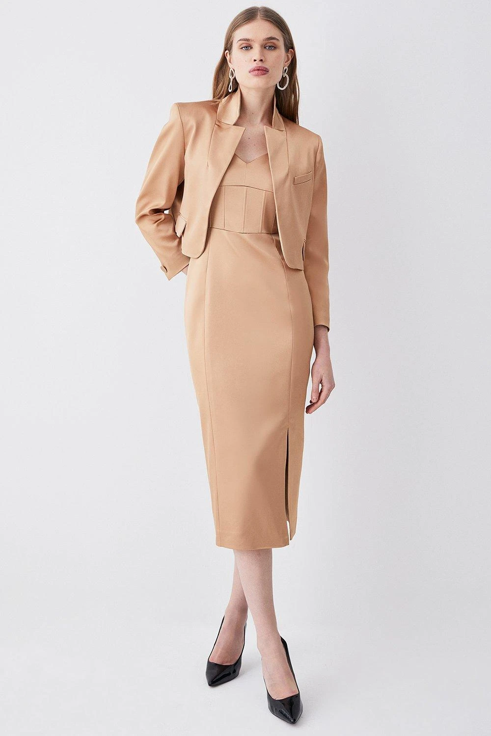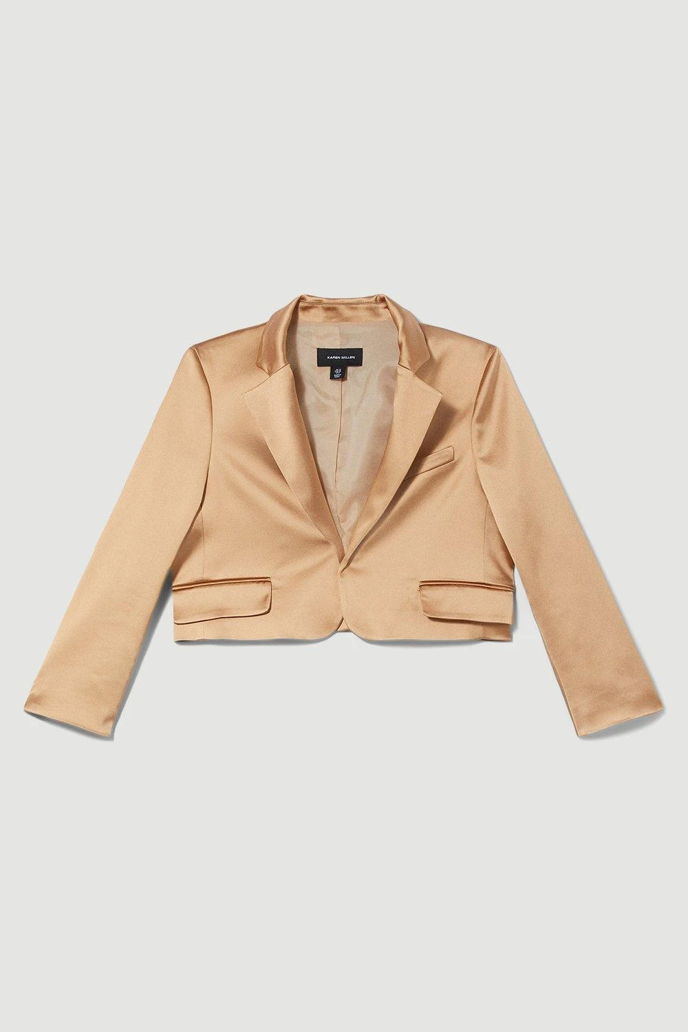 Crafted from luxurious Italian structured satin for an elevated feel, this cropped jacket provides a sophisticated finishing touch to any occasion ensemble. A notch neck adds sharp proportions, while a cropped cut gives a contemporary touch. Style this piece with the co-ordinating satin corset pencil dress for a truly elegant look.