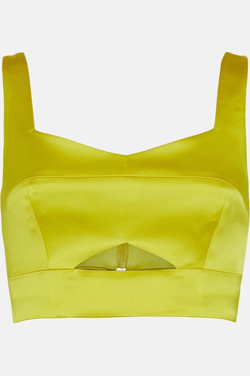 Sumptuous Italian satin lends this silky top a softly structured feel. Detailed with a bold front cut-out and sweetheart neckline, it accentuates the bust beautifully, with a hem that sits high on your waist to draw the eye to your slimmest point.