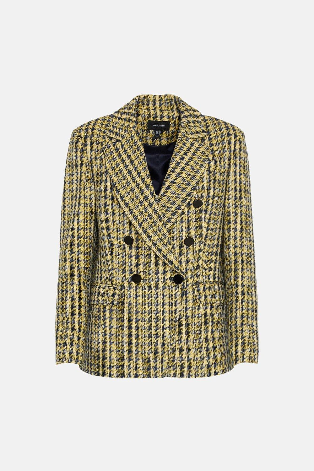 Embrace traditional tailoring with this heritage tweed blazer. Accented with brass buttons, jetted pockets and a double-breasted lapel collar, this garment exudes timeless elegance. Layer on top of an all-black ensemble to make a truly striking impact.