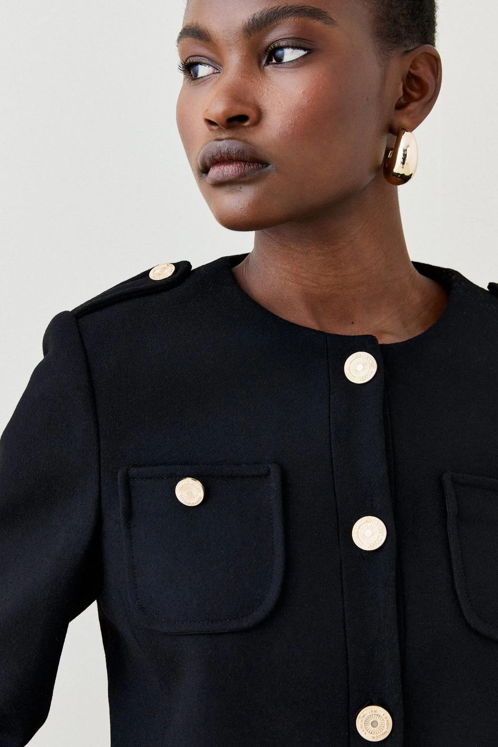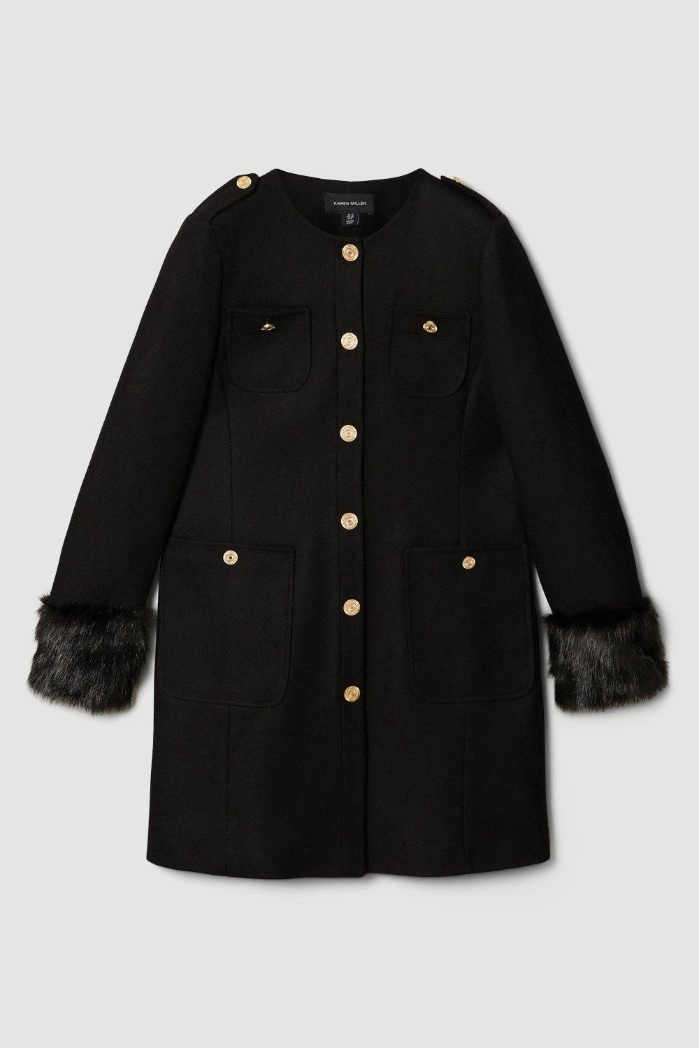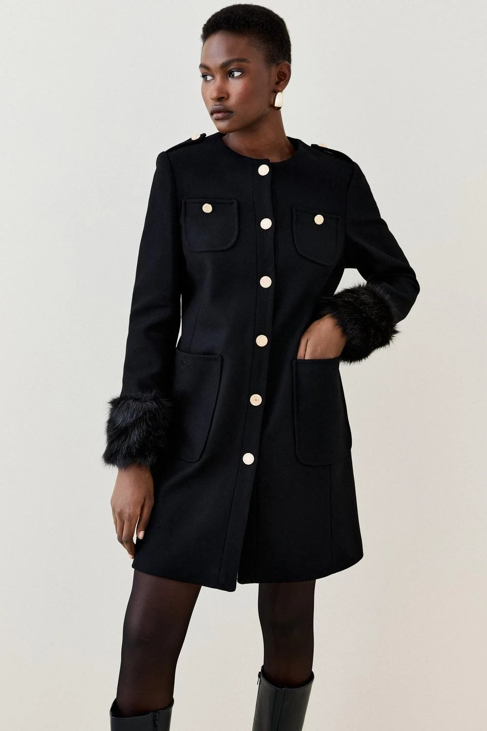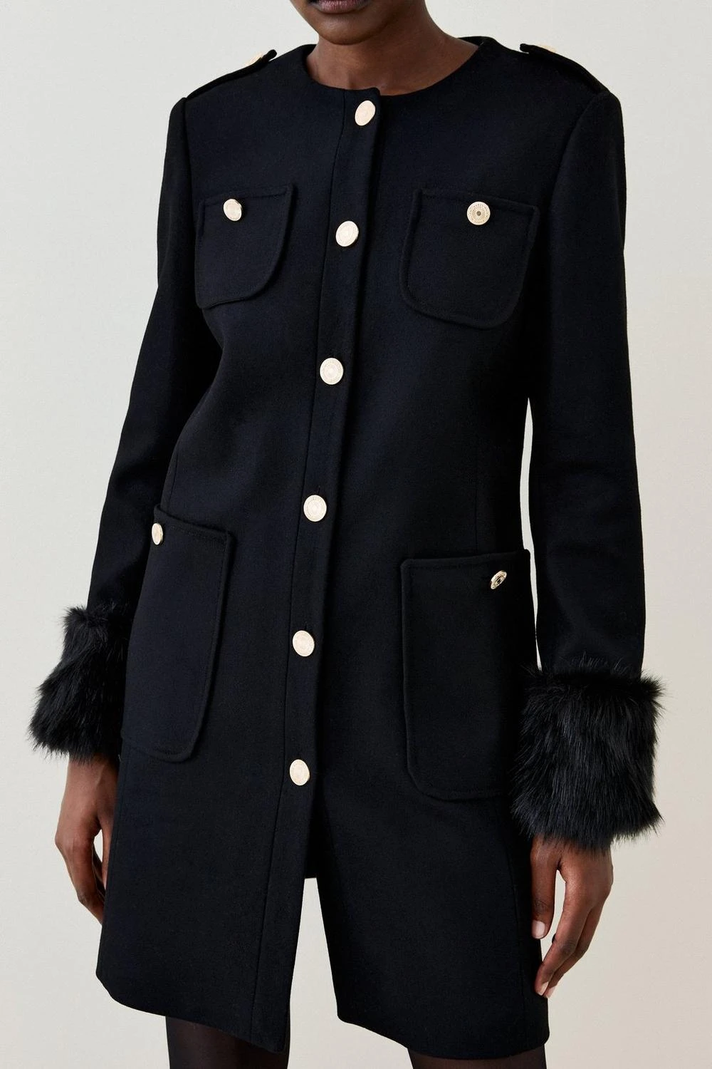 Main: 30% Recycled Wool, 40% Wool, 30% Polyamide. Lining: 100% Polyester. Professional Dry Clean Only. Model wears UK 8/US 4. Model height: 5″9. Length Approx: 88cm.