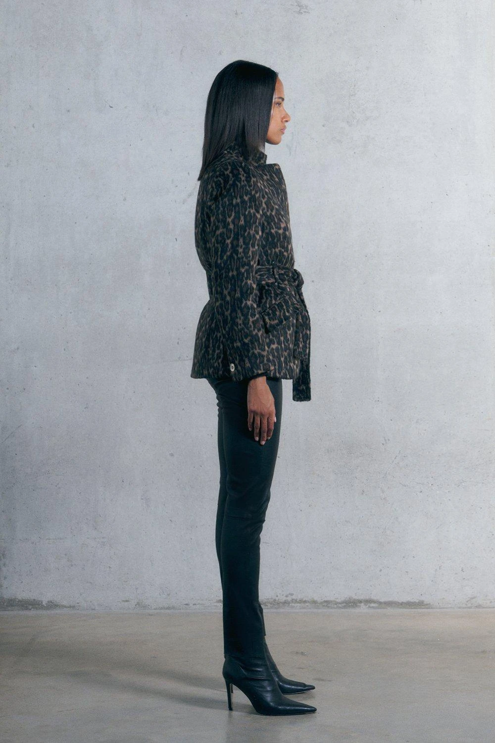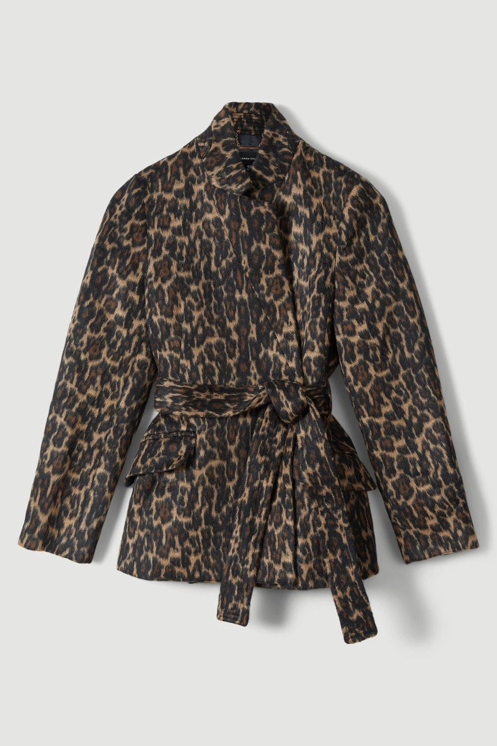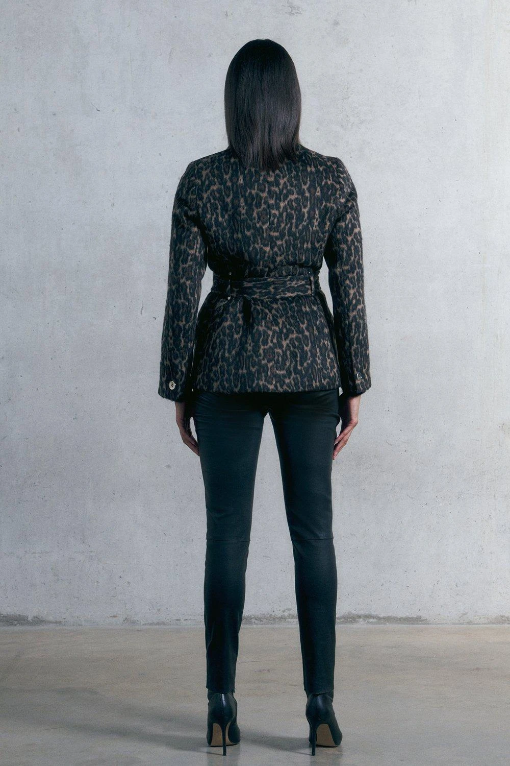 Crafted with a subtle leopard print motif, this jacquard jacket adds a suave touch to casual styling.