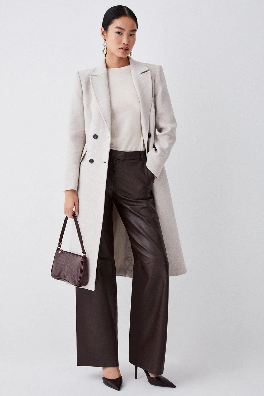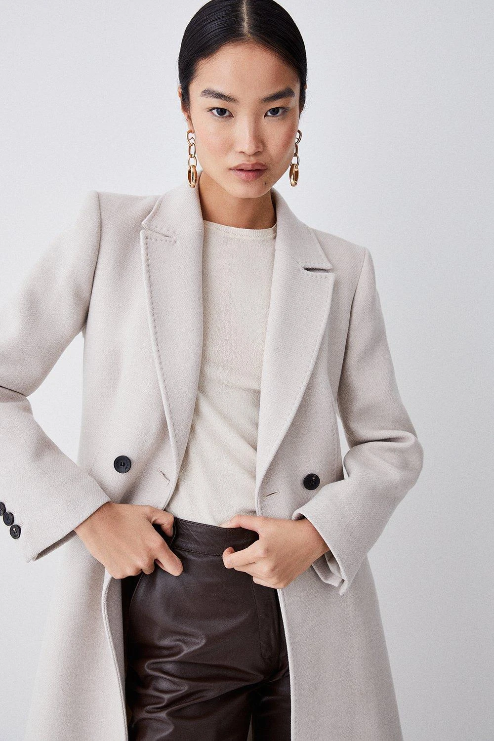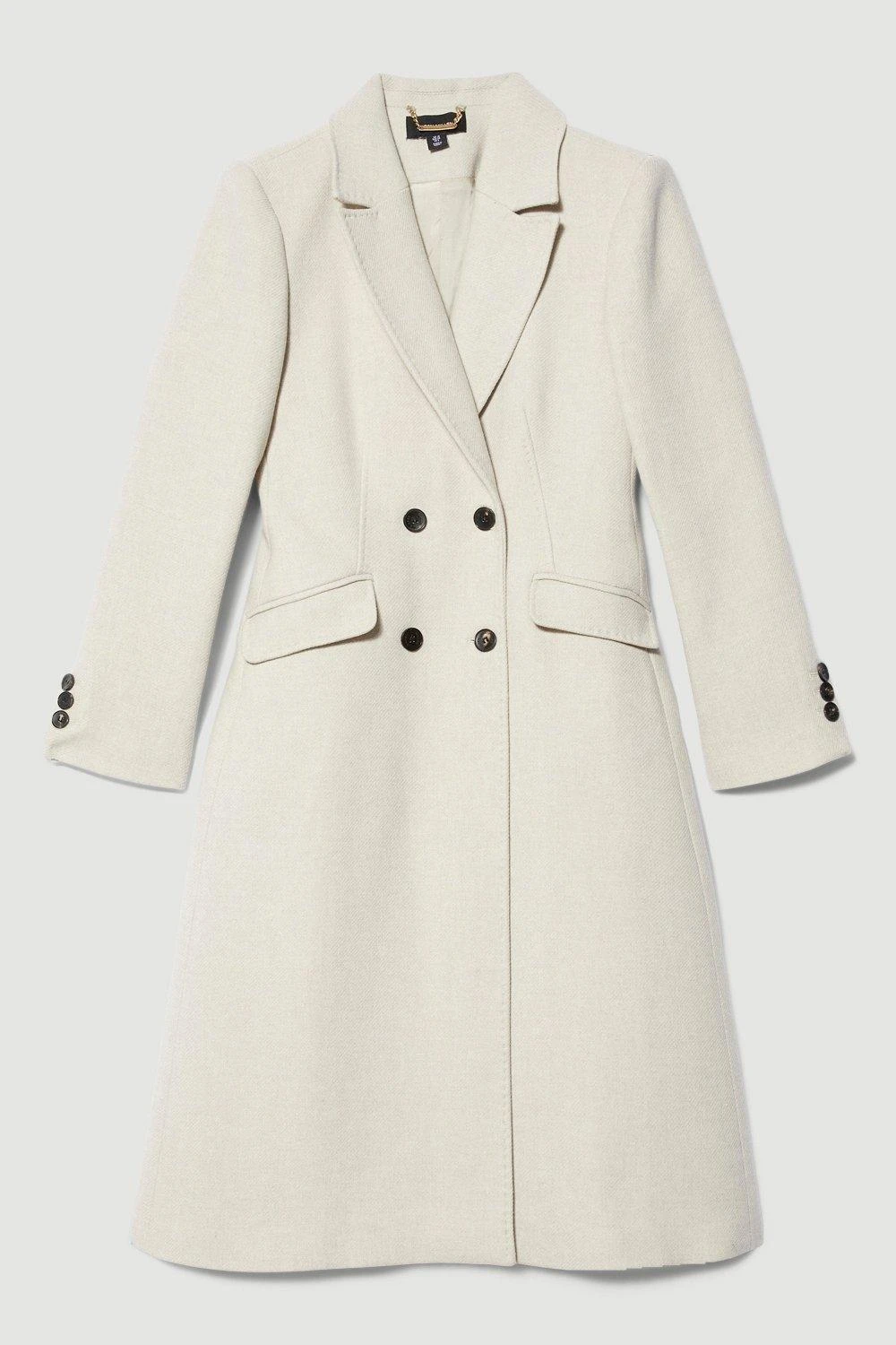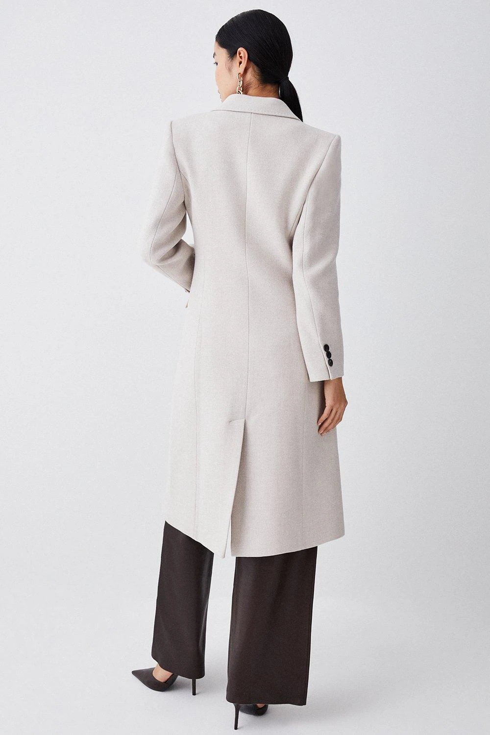 An iconic style with classic appeal, this longline tailored coat is crafted with Italian virgin wool for a sumptuous feel. Signature KM embossed buttons add a premium touch, while notched lapels and flap pockets uphold a traditional aesthetic.