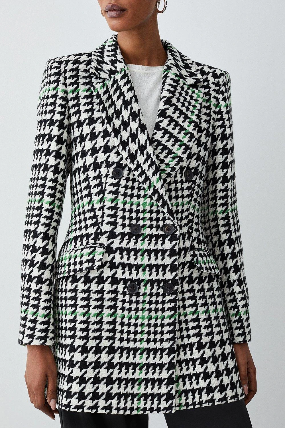 Main: 50% Acrylic, 25% Polyester, 20% Wool, 5% Metallised fibres. Lining: 100% Polyester. Dry clean only. Model wears UK 8/US 4. Model height: 5″9. Length measurement: 80cm.