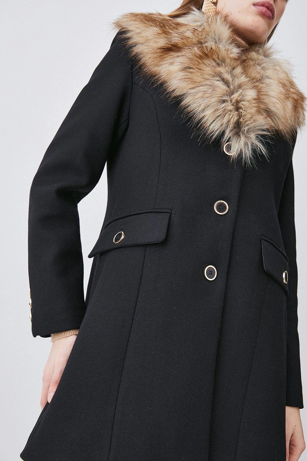 Combining a timeless silhouette with a touch decadence, this coat exudes covetable elegance. The collar is crafted with a swathe of soft faux fur, infusing the coat with undeniable luxury, while Italian virgin wool ensures a sumptuous feel.