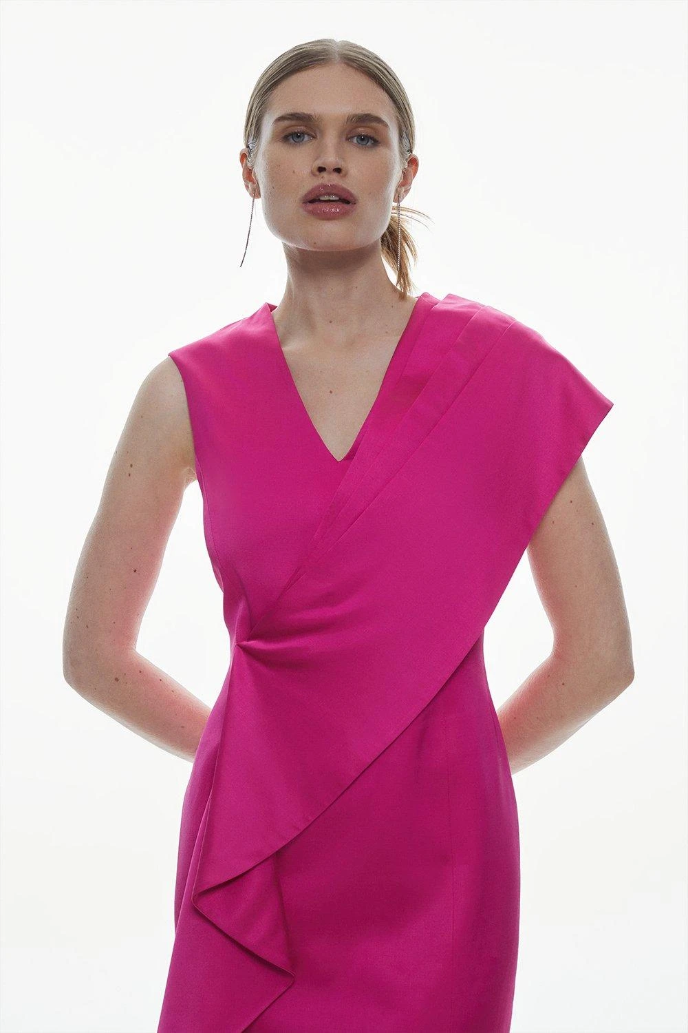 Karen Millen Italian Wool Satin Drape Midi Dress