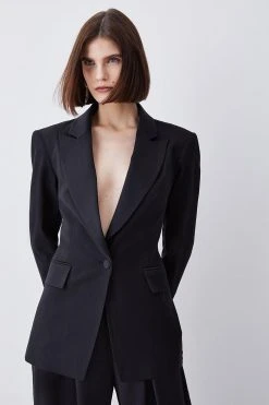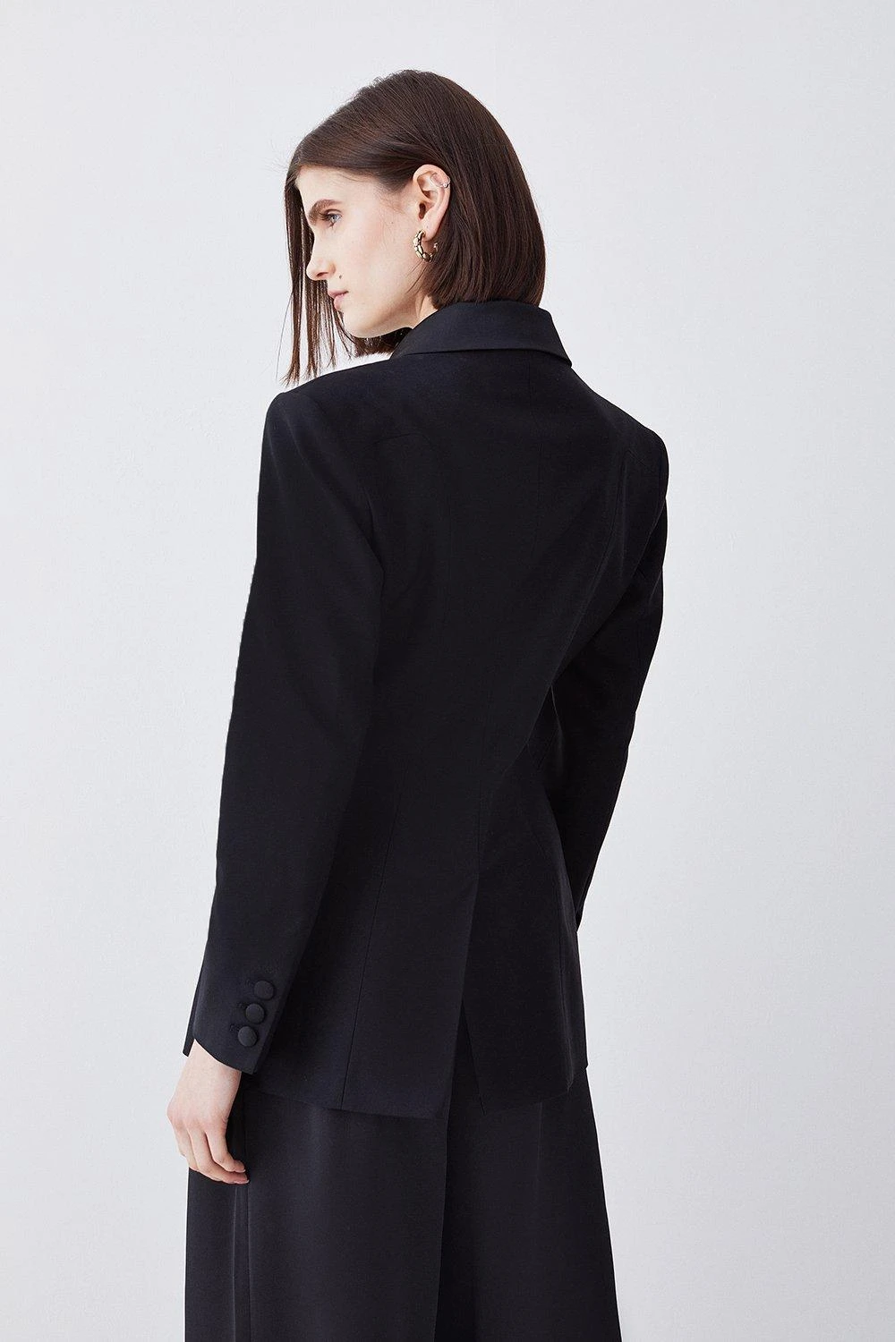 Karen Millen Italian Wool Satin Tailored Single Breasted Tux Jacket