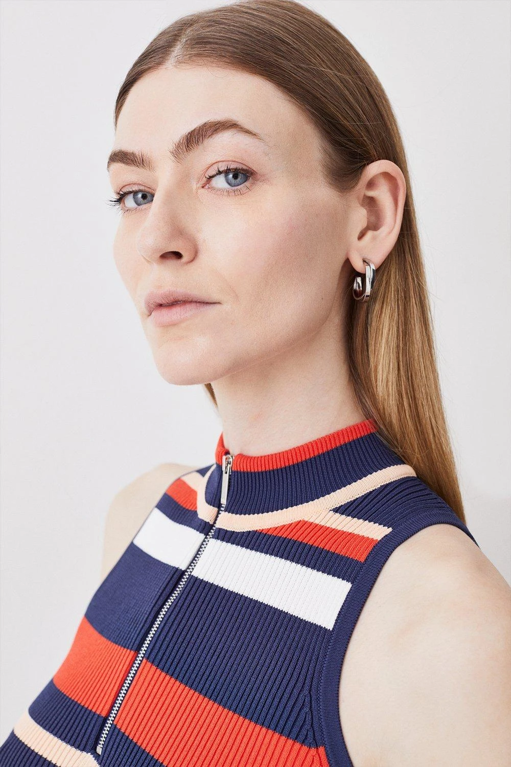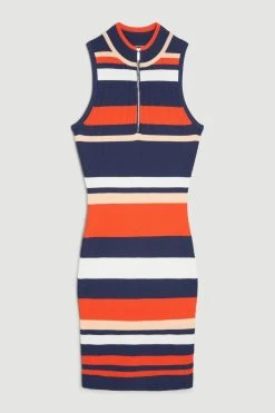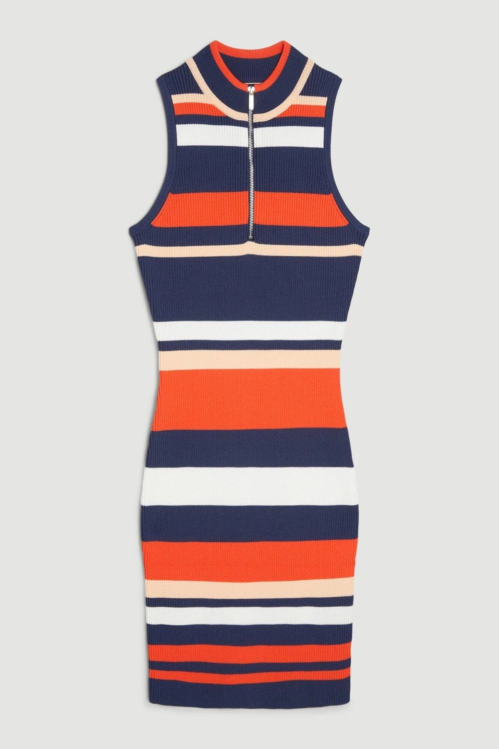 Karen Millen Knitted Rib Zip Up Stripe Mini Dress