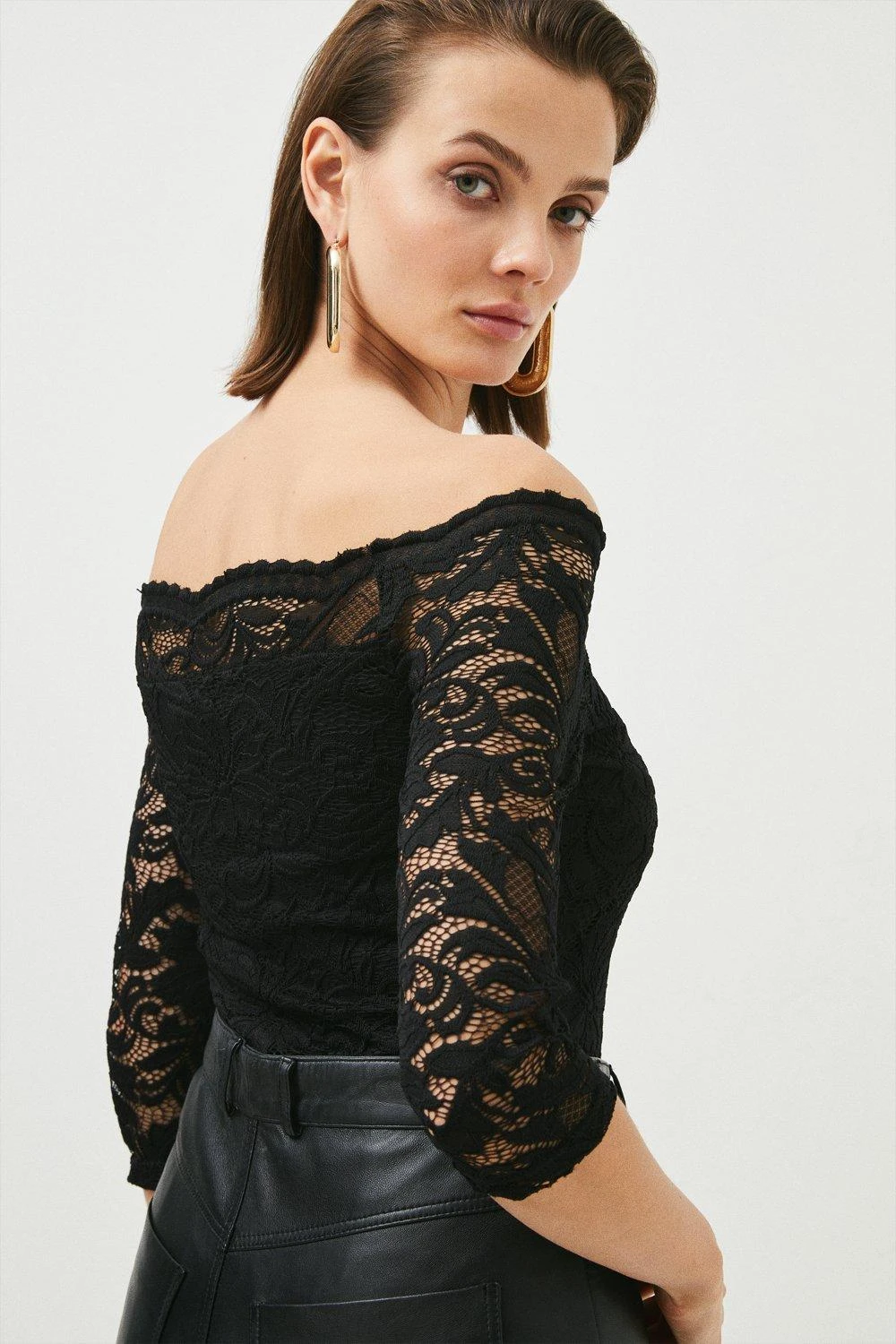 A sophisticated option for dressing up denim or setting the tone at after-dark dinner parties, this versatile bodysuit boasts an all-over lace finish, shoulder-baring Bardot neckline and neat three-quarter sleeves. Promising a crease-free finish, the bodysuit silhouette means you never have to worry about it becoming untucked from your waistband.