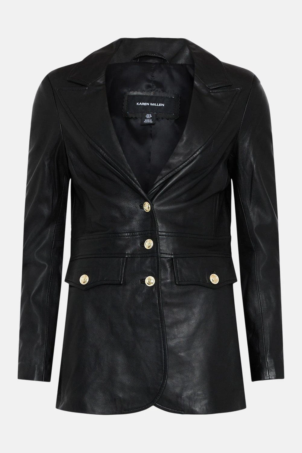 Shell: Leather. Inner: 100% Polyester. Professional dry clean only. Model wears UK 8/US 4. Model height: 5”9. Length measurement: 71cm.