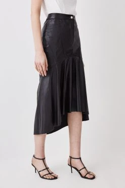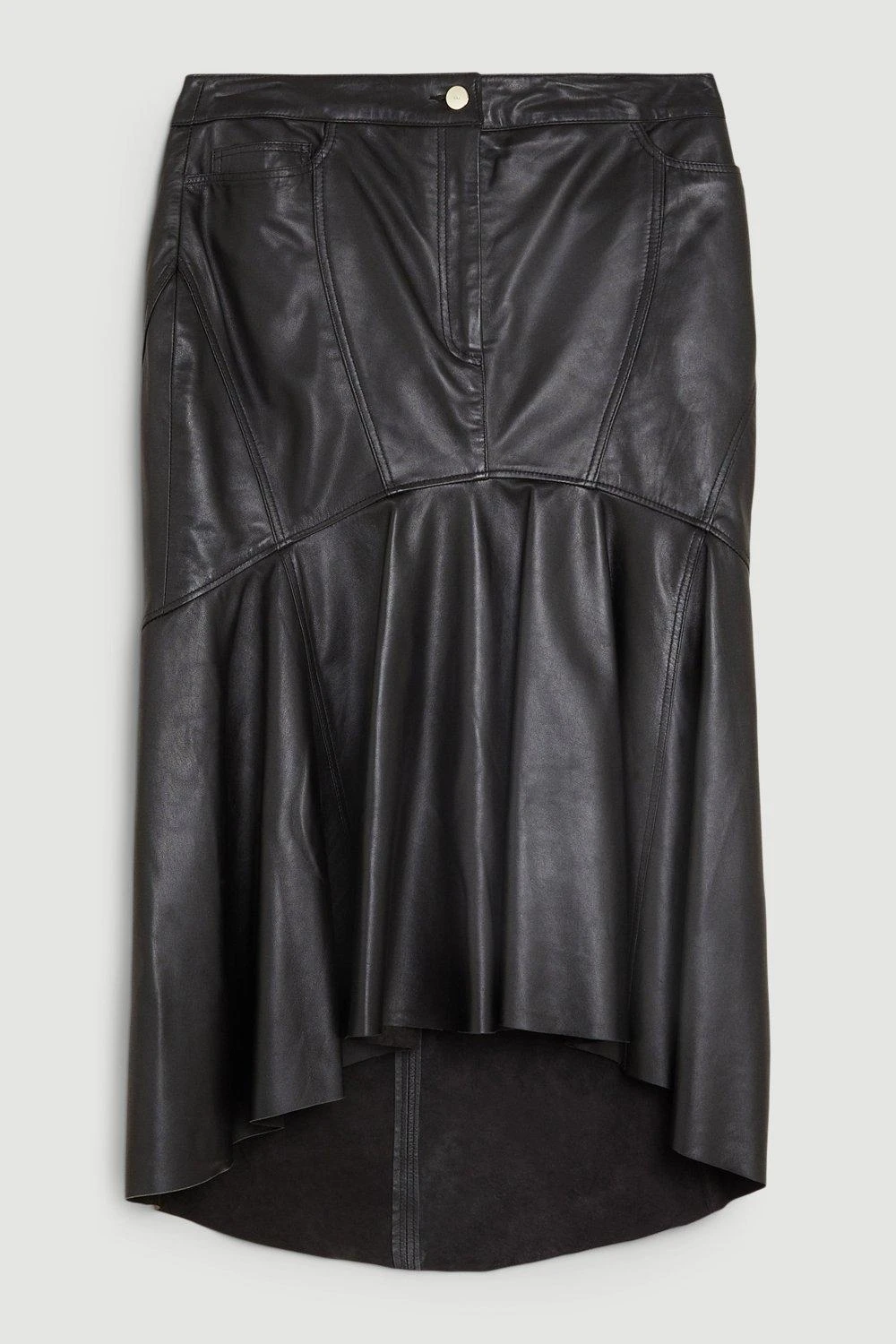 Crafted from sumptuous leather, this classic skirt has been updated with a peplum hemline for a fashion-forward aesthetic. The peplum detail creates a flattering, fit-and-flare silhouette.