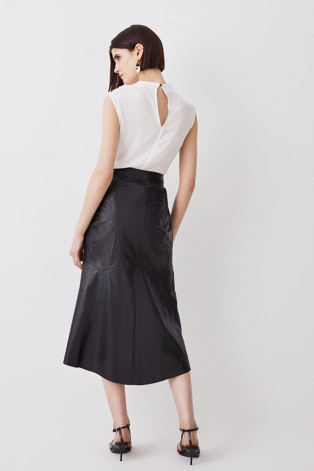 Main: 100% Responsible Leather. Lining: 100% Polyester. Specialist Clean Only. Model wears UK size 8/ US size 4. Model height Approx: 5″9. Length Approx: 89cm.