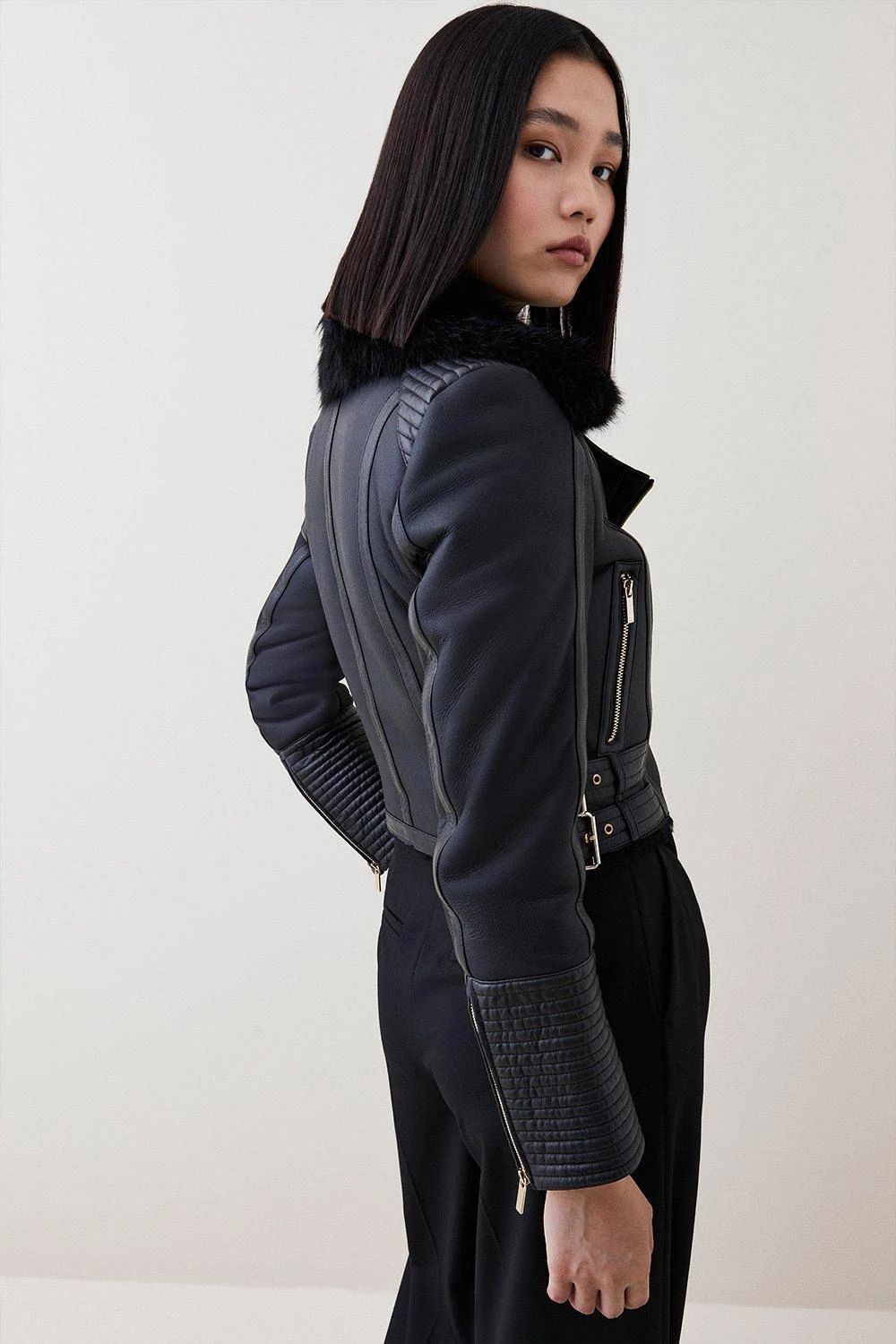 Main: 100% Responsibly Sourced Sheepskin Shearling. Do not clean. Model wears UK 8/US 4. Model height: 5″9. Length measurement: 45cm