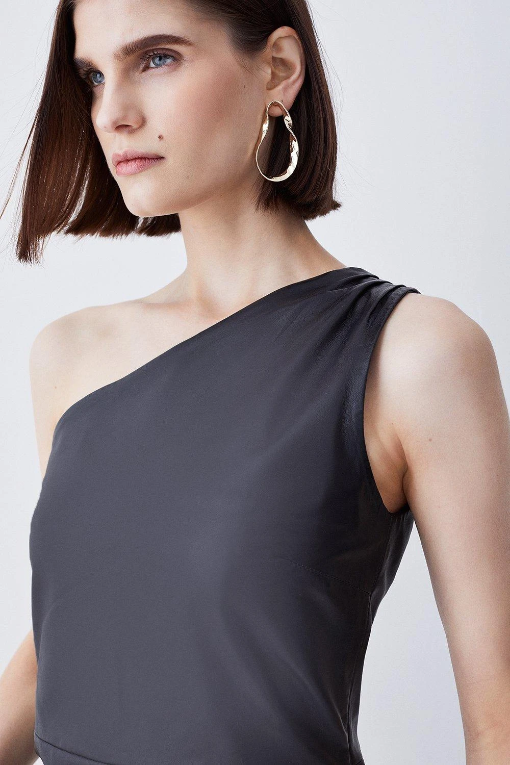 Make an impact in this sleek mini dress. Crafted from sumptuous leather, this piece promises to deliver luxury and sophistication. An asymmetric one shoulder design adds a contemporary touch, while an A-line skirt flatters the silhouette.