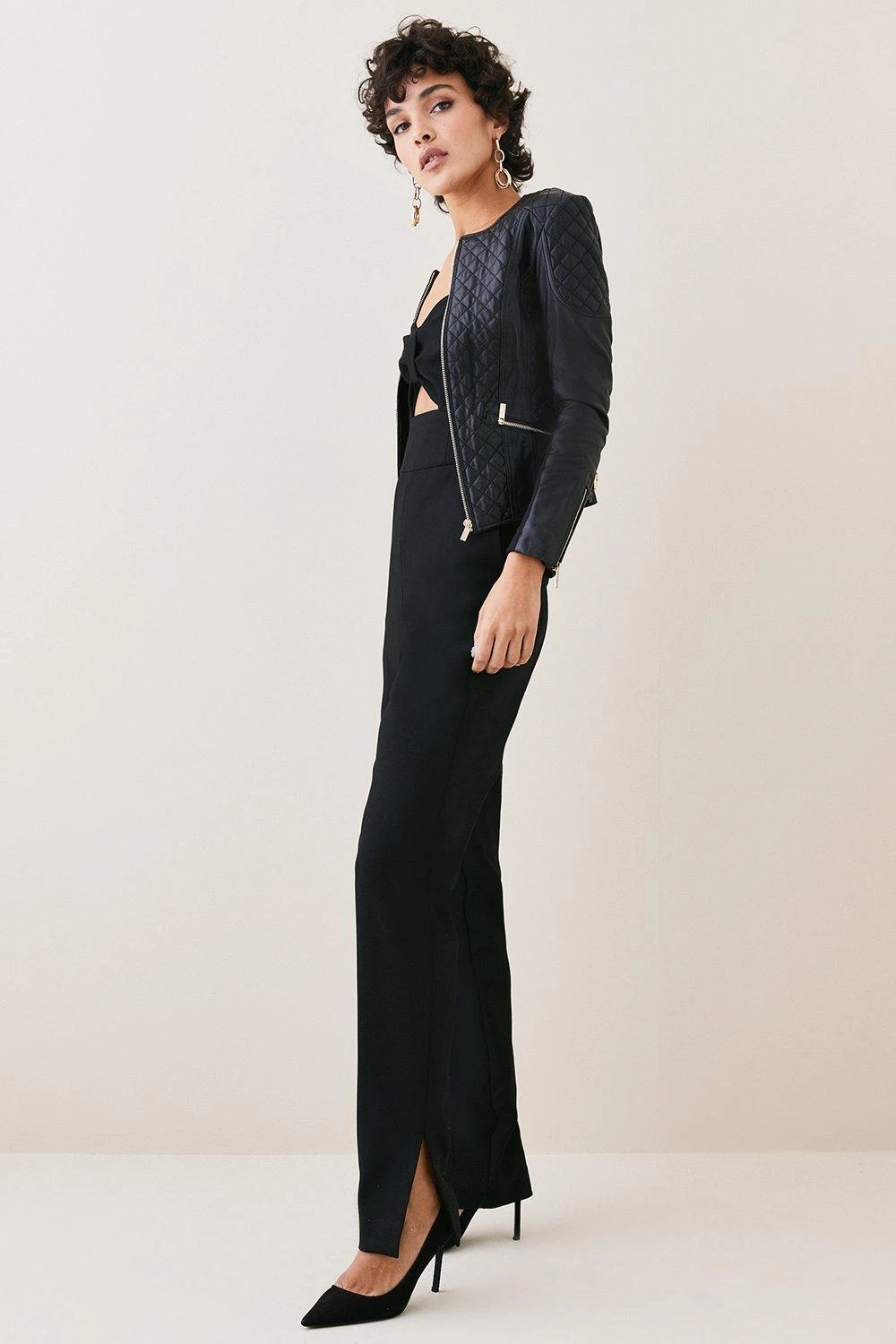 Main: 100% Lambs Leather. Lining: 100% Polyester. Do not clean. Model wears size 8. Measurements based on UK 10: centre back to hem: 48.5cm