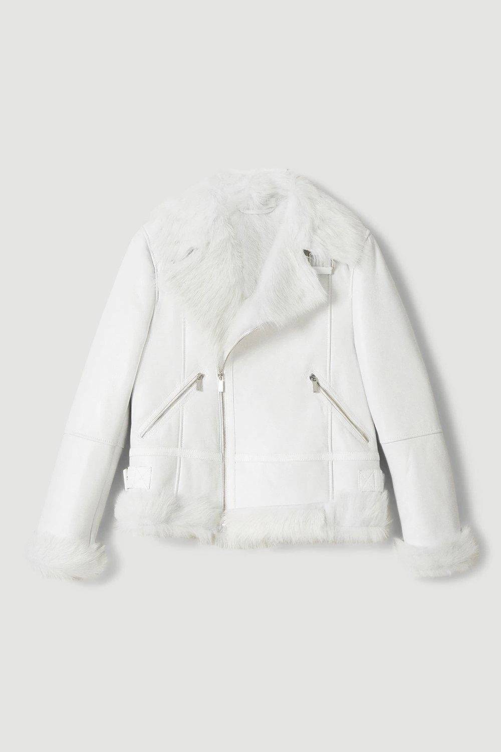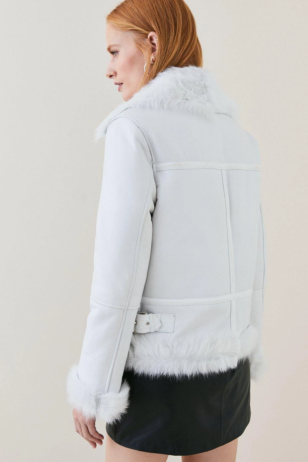 Crafted with a luxurious combination of buttery-soft leather and plush shearling, this aviator coat adds a timeless quality to your style.