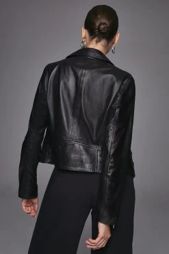 Boasting beautifully boxy proportions that promise to never drown your figure, our timeless leather jacket is a year-round must-have. Classic biker-style details like silver-tone zips and notched lapels perfectly encapsulate the timeless mood of a jacket that only gets better with age.