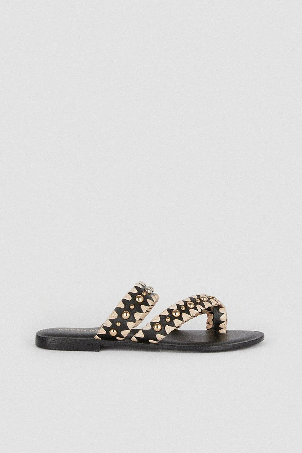 Upper: Leather / Raffia/ Studs, Lining: Leather, Insole: Leather ,Sole: Thunit