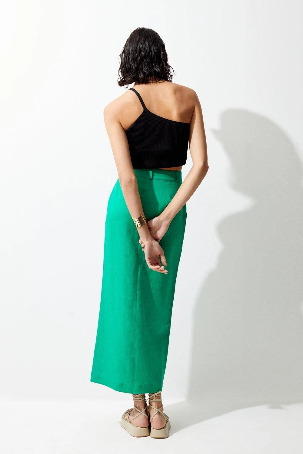 Karen Millen Linen Tailored Pencil Midi Skirt