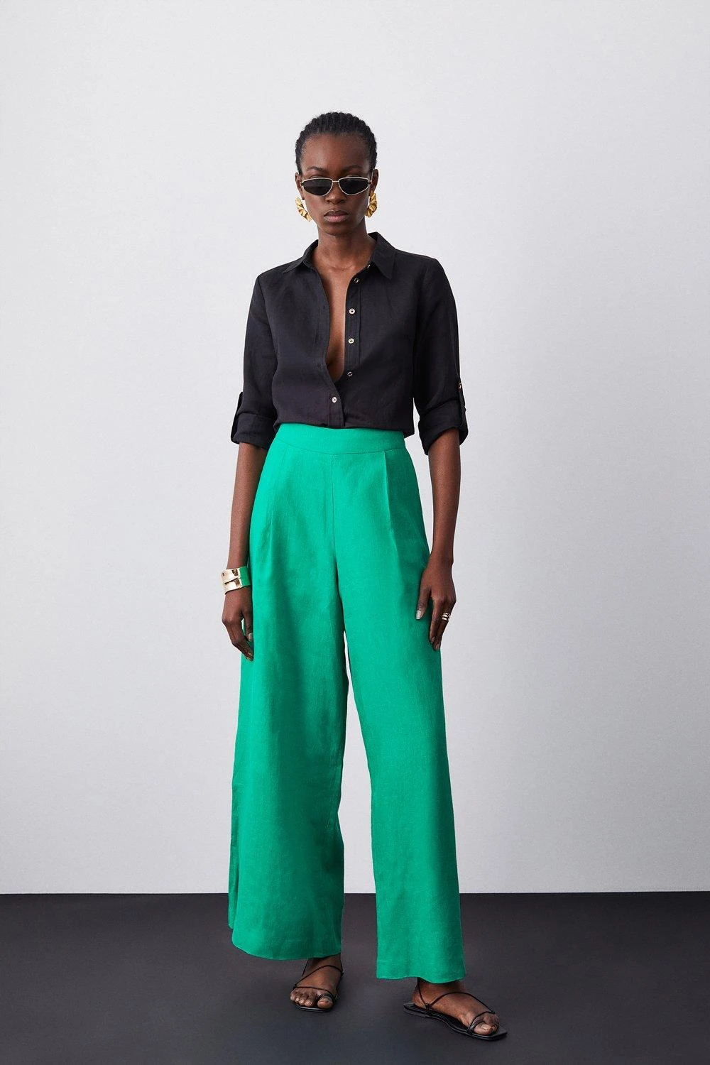 Karen Millen Linen Tailored Wide Leg Trouser