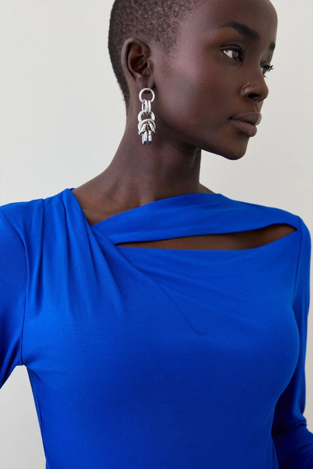 Main: 97% Responsibly Sourced Viscose, 3% Elastane. Model wears UK 8/US 4. Model height: 5″9. Length measurement: 51cm.