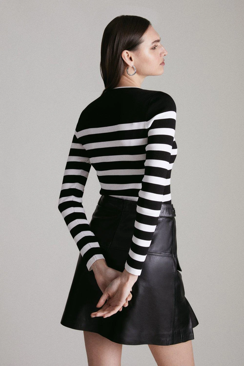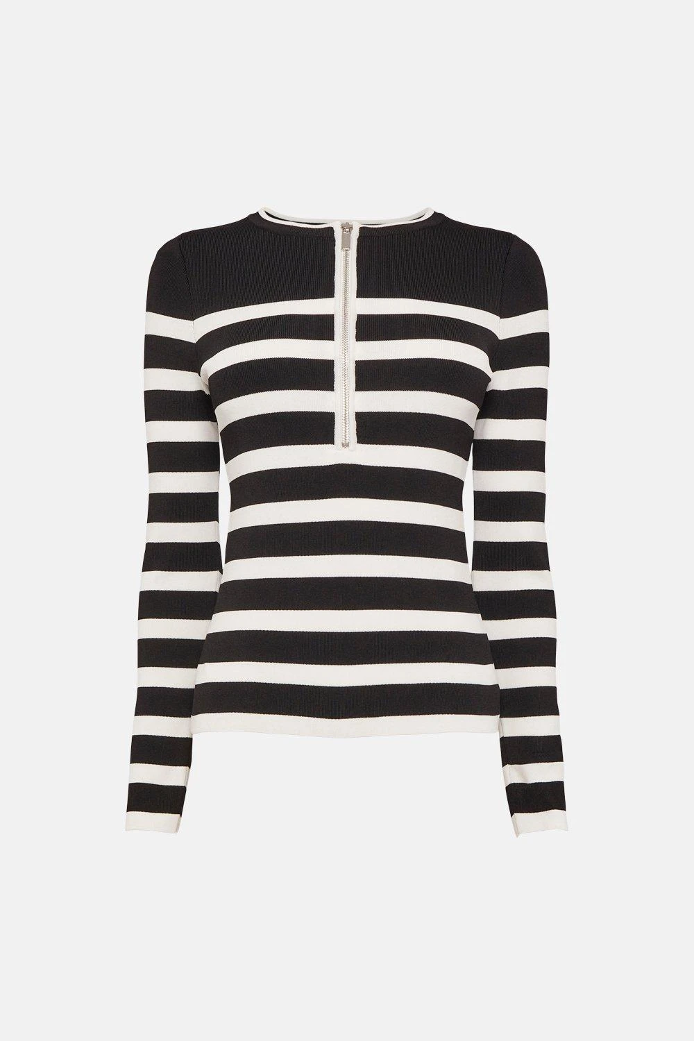 This top proves you cant go wrong with stripes. Timeless in style, this eye-catching piece features a bold monochrome pattern and an exposed front zip.