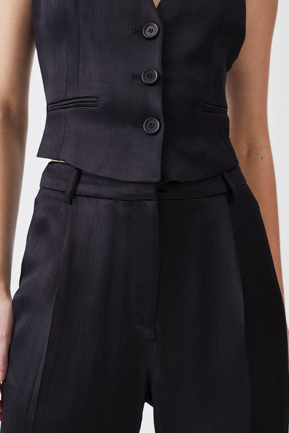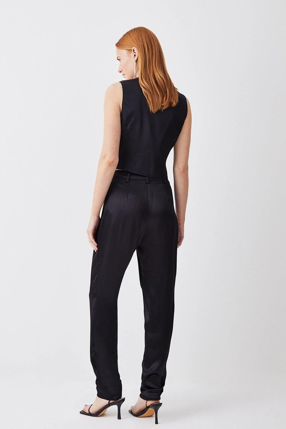 Crafted in lustrous satin composition for a soft feel, these slim leg trousers provide both sophistication and comfort. Style with the co-ordinating waistcoat and blazer for an enviable ensemble.