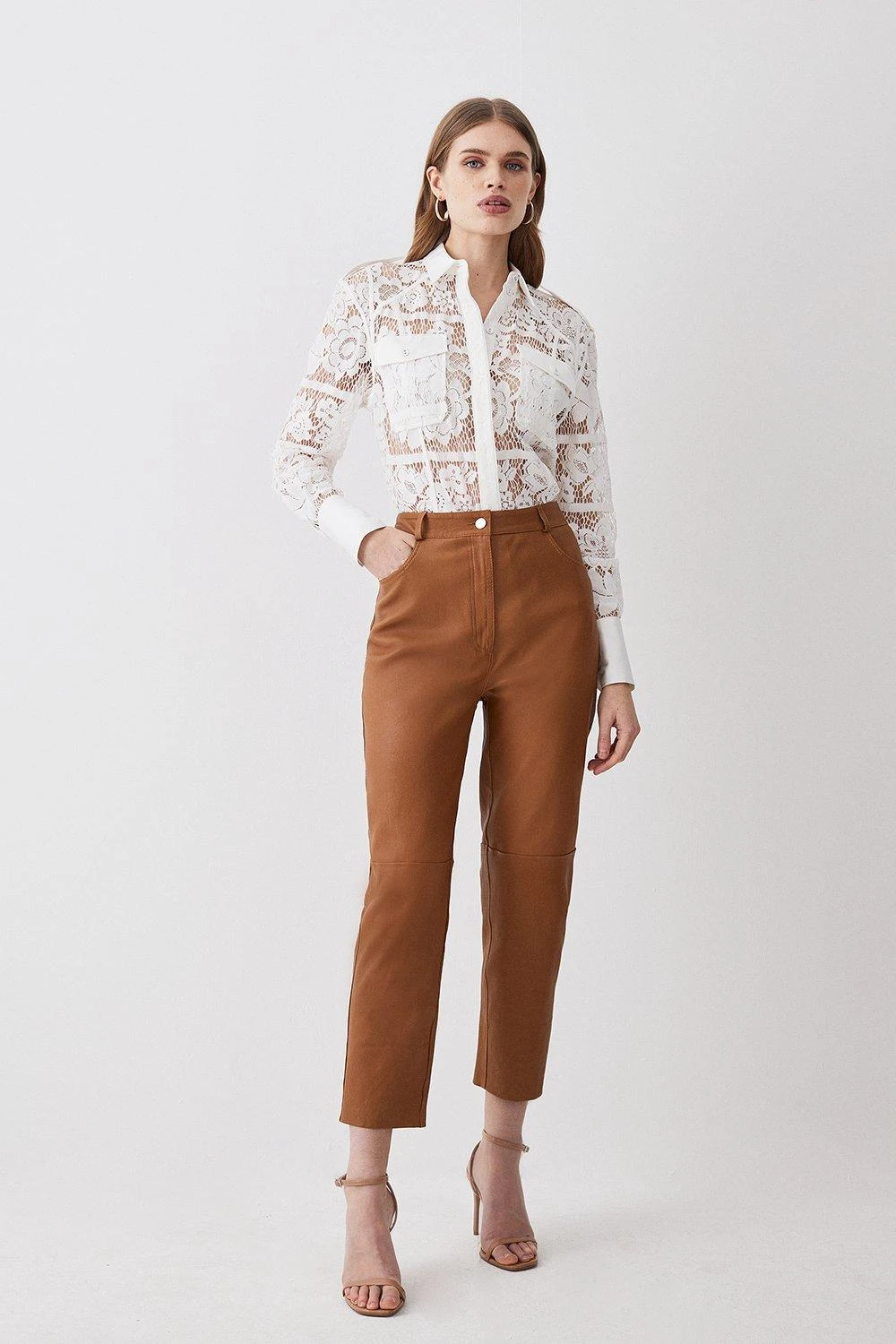 Main: 100% Responsibly Sourced Lamb Leather. Do not clean. Model wears UK 8/US 4. Model height: 5″9. Leg length measurement: 66cm.