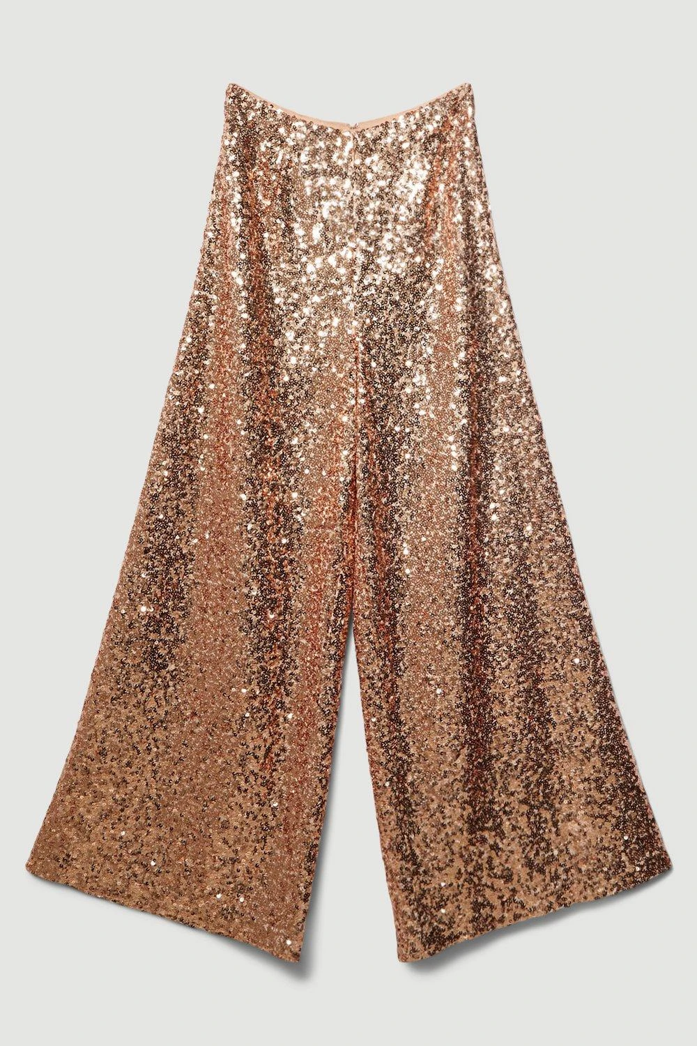 Add a dose of glistening elegance to your after-dark collection with these dazzling trousers. A wide leg fit creates a flattering silhouette, while glimmering rose gold sequins nod to a retro aesthetic.