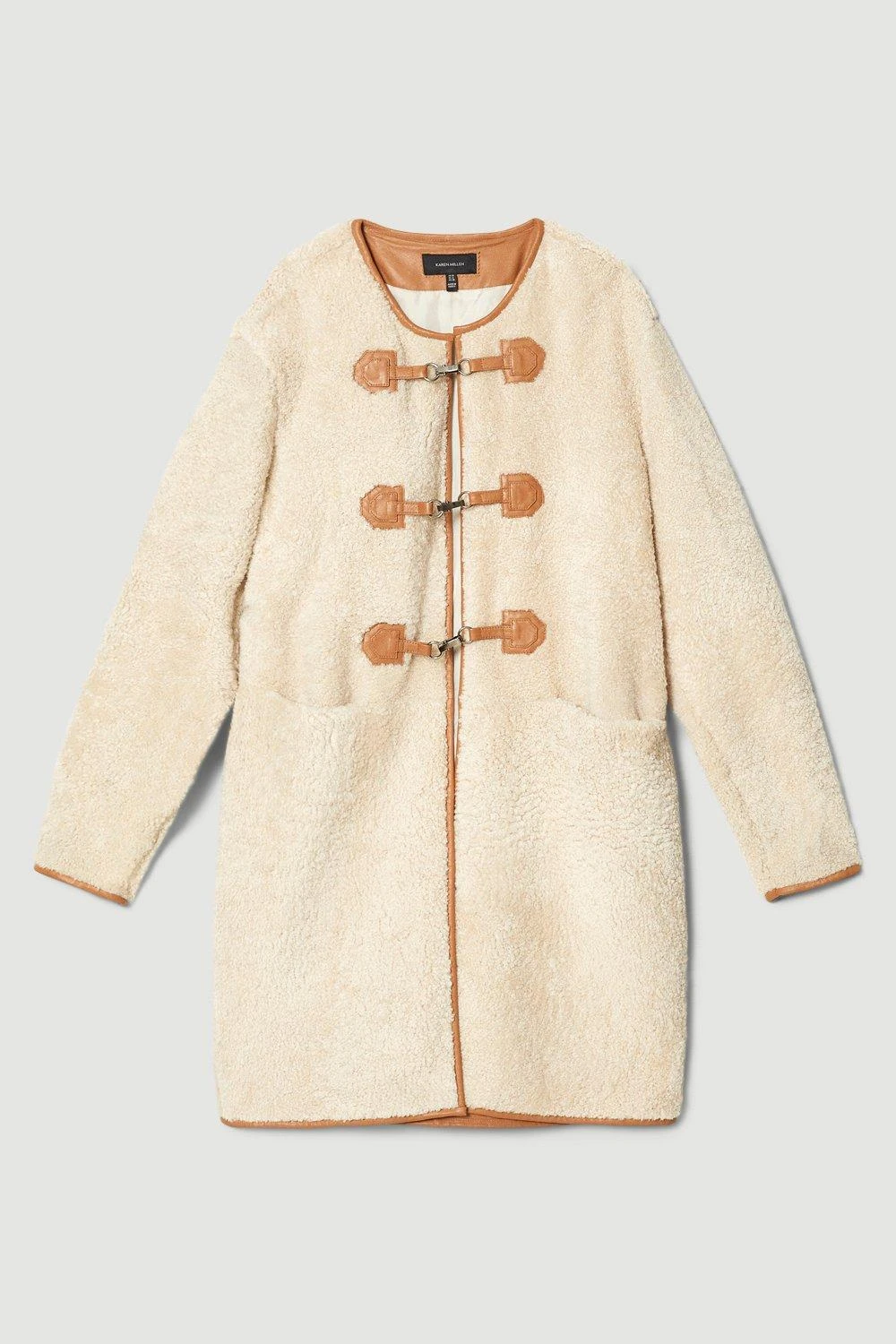 Main: 100% Responsibly Sourced Sheepskin Shearling. Do not clean, Model wears UK 8, US 4. Model height: 5ft9. Length measurement: 100cm.