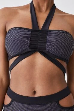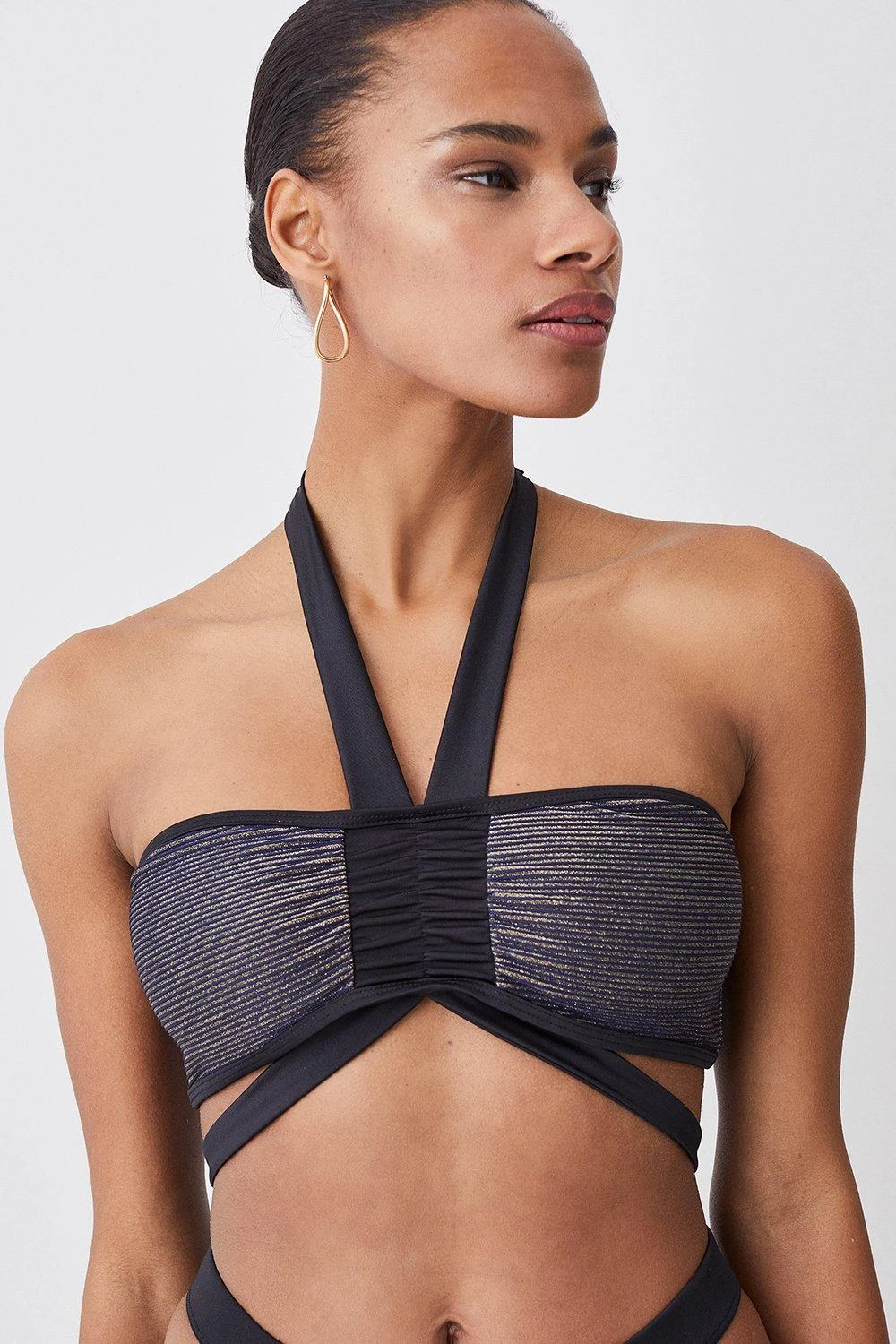 71% Polyamide 19% Metalised Fibre 10% Elastane. Wash as synthetic. Model wears UK Small.