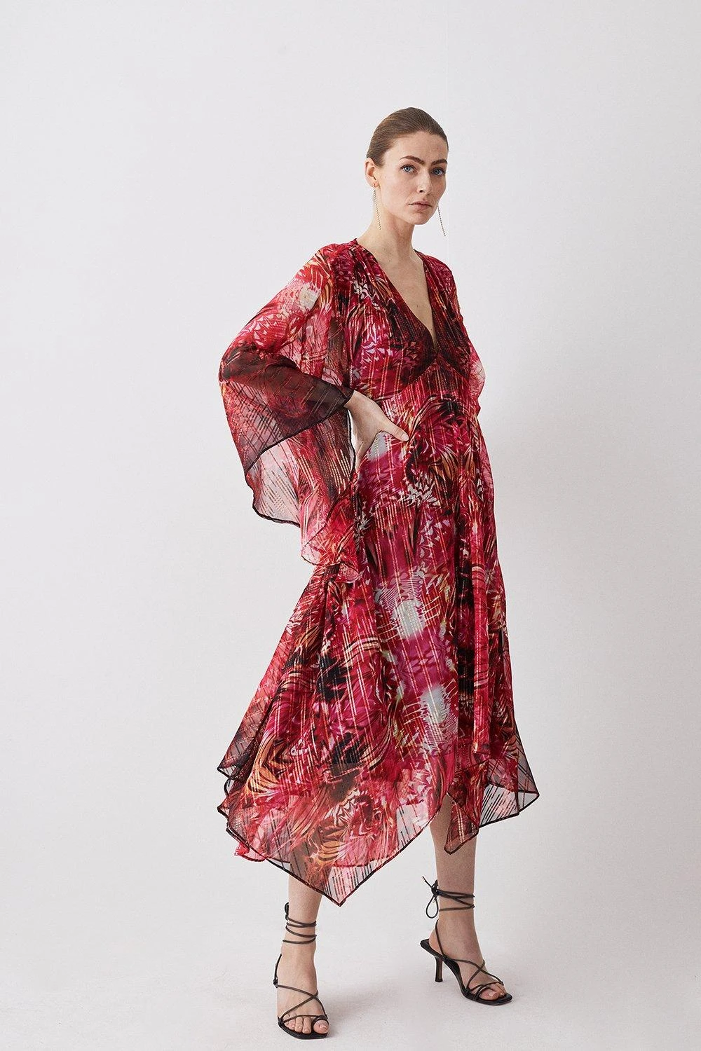 100% polyester. Gentle machine wash at 30 with similar colours. Model Height 5”10 – Model wears a UK 8/US Size 6. Centre back length of a 10: 120cm