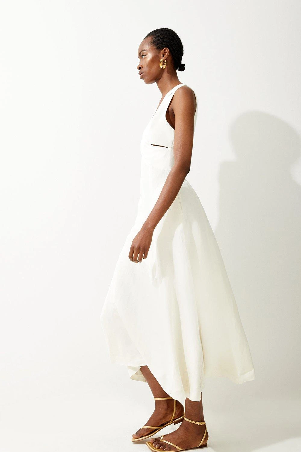 Karen Millen Open Back V Neck Woven Midi Dress