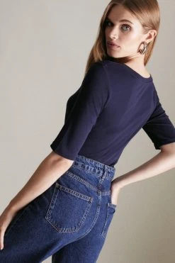 Nail the basics with this organic cotton top with scoop neck and half-length sleeves. The stretch knit fabric fits to the body and wears well all day.
