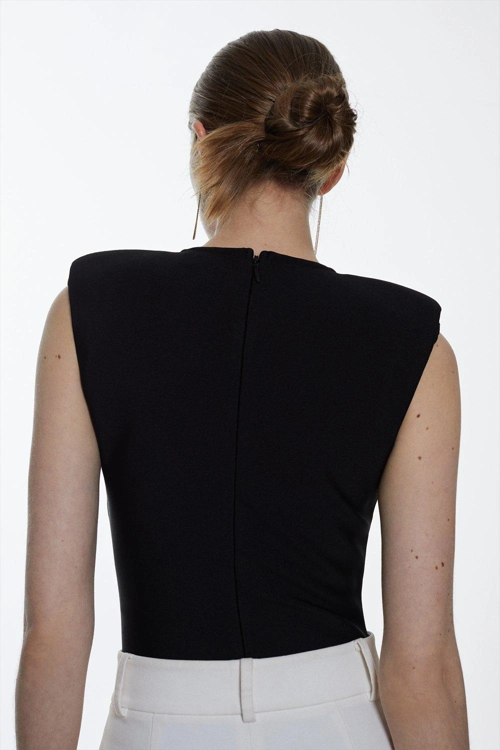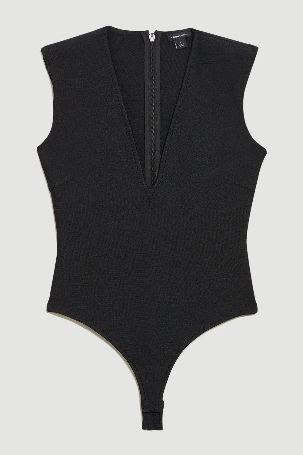 Defined by a deep plunge neckline, this bodysuit adds a sultry twist to evening ensembles. A rear zip fastening ensures a secured fit, while a sleeveless design naturally calls to summer plans.