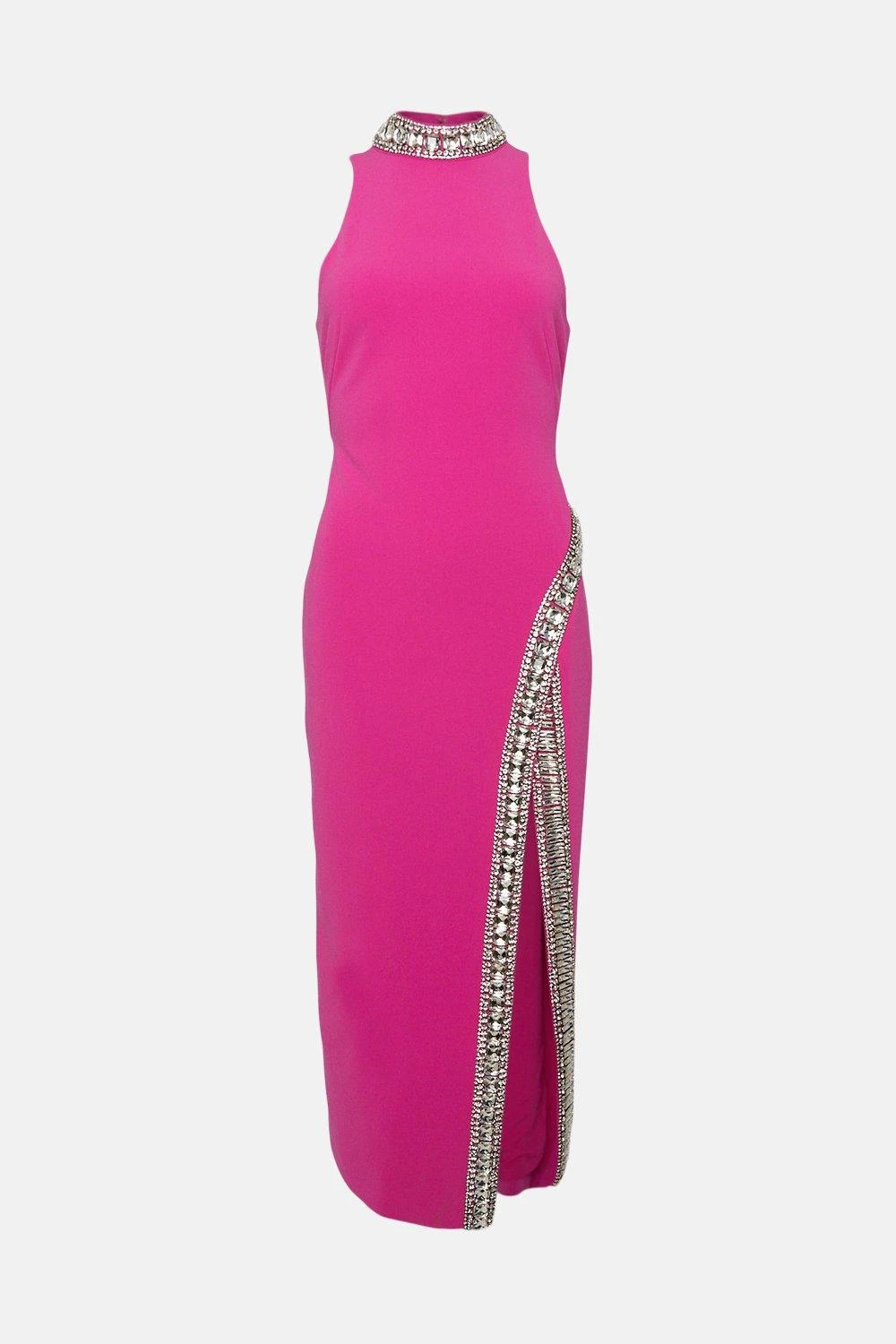 Indulge in a spot of sartorial hedonism this summer, starting with our show-stopping colour-pop maxi dress. Lined with chunky crystal trims for an alluring Art Deco feel, it looks spectacular glinting beneath the moonlight at special soirees and drapes down to reveal polished legs thanks to a seductively high thigh split. The clean, sleeveless cut comes further accentuated by a back cut-out to hint at another sliver of sun-kissed skin.