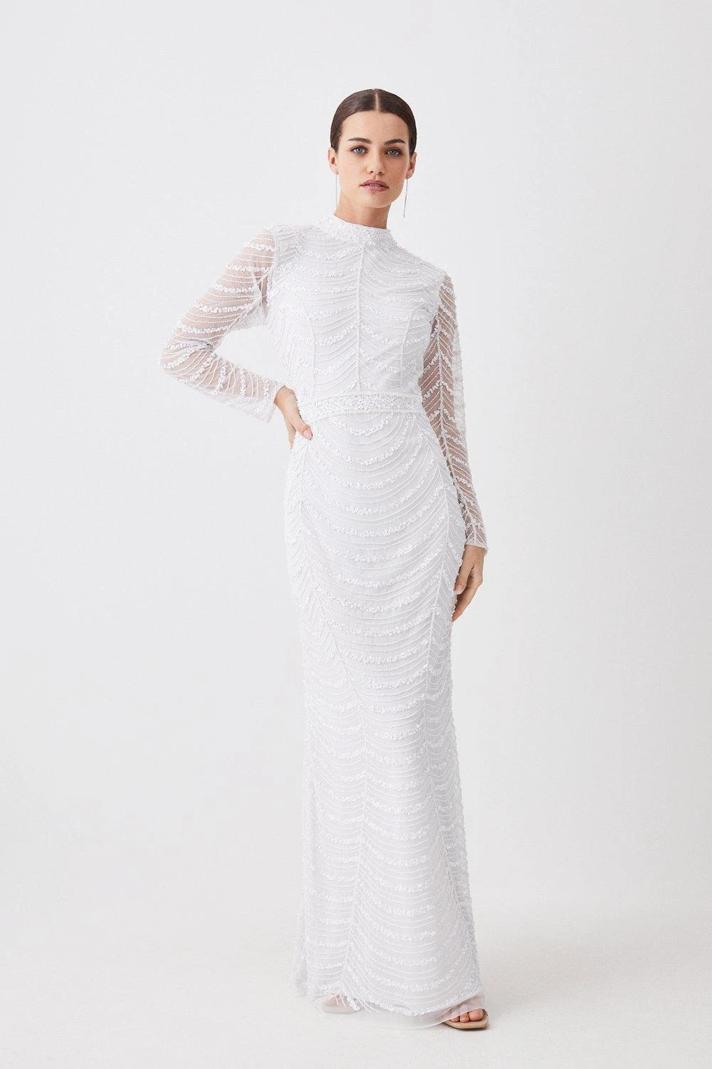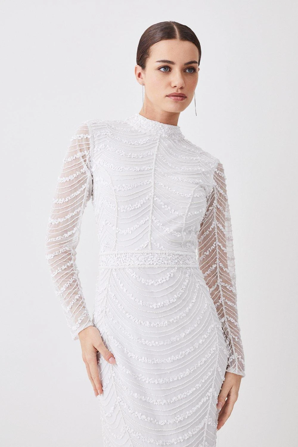 Main: 100% Polyester. Lining: 100% Polyester. Hand wash separately in cool water using non-biological liquid detergent. Do not bleach. Do not dry clean. Cool iron on reverse. Model wears UK 8/ US 4. Centre back length 158cm.