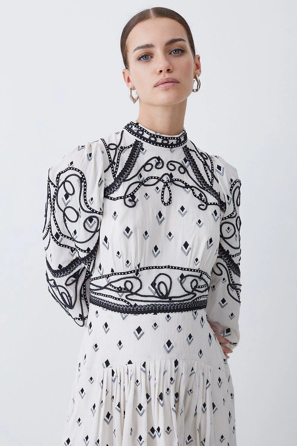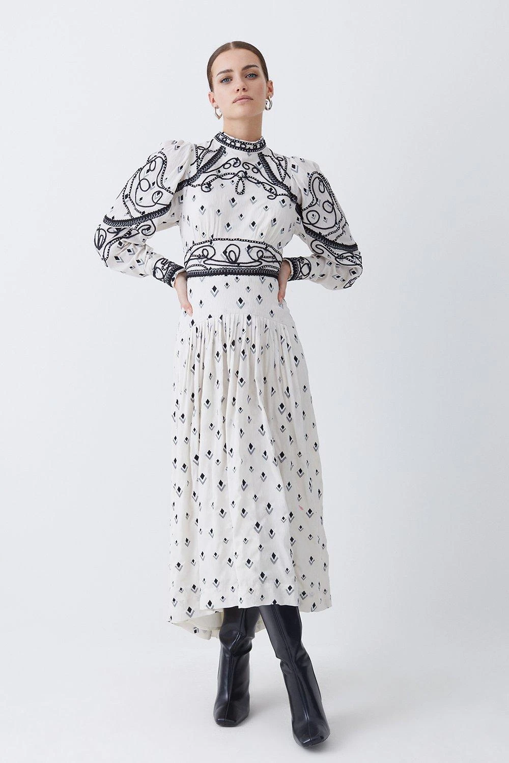 100% polyester. Gentle machine wash at 30 with similar colours. Model Height 5”10 – Model wears a UK 8/US Size 6. Centre back length of a 10: 120cm