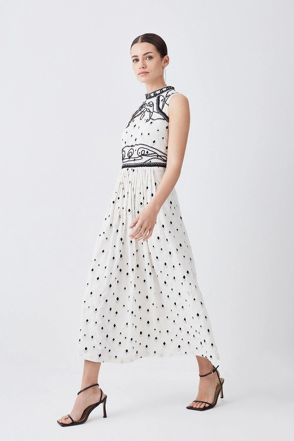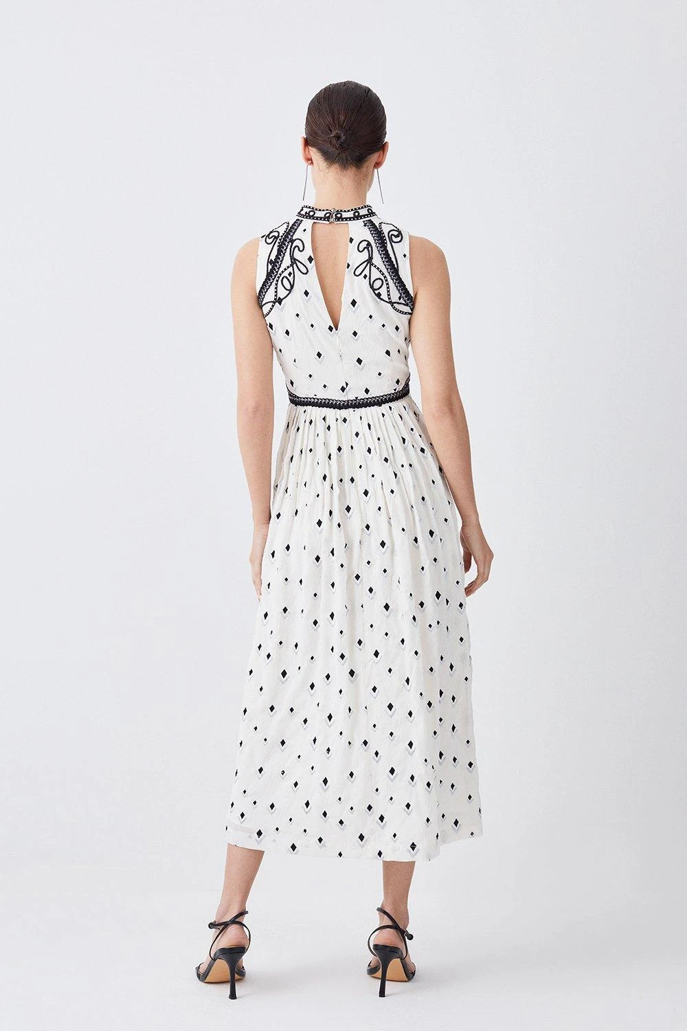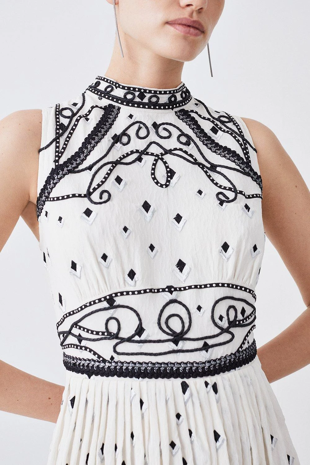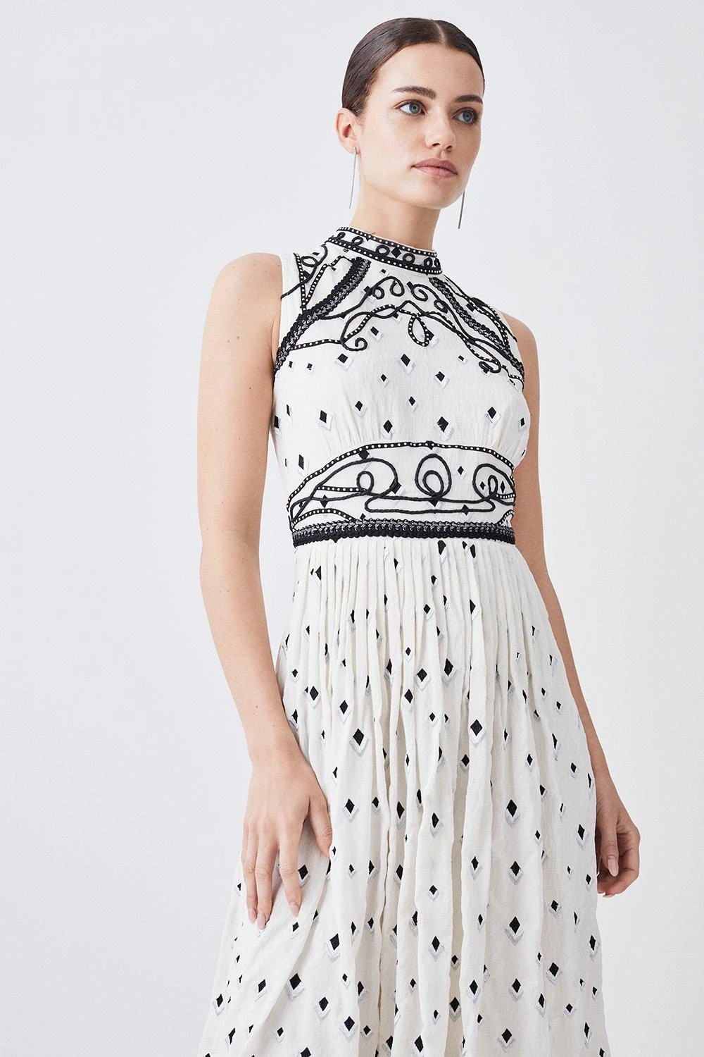 Karen Millen Petite Embroidered Cornelli Tape Woven Dress