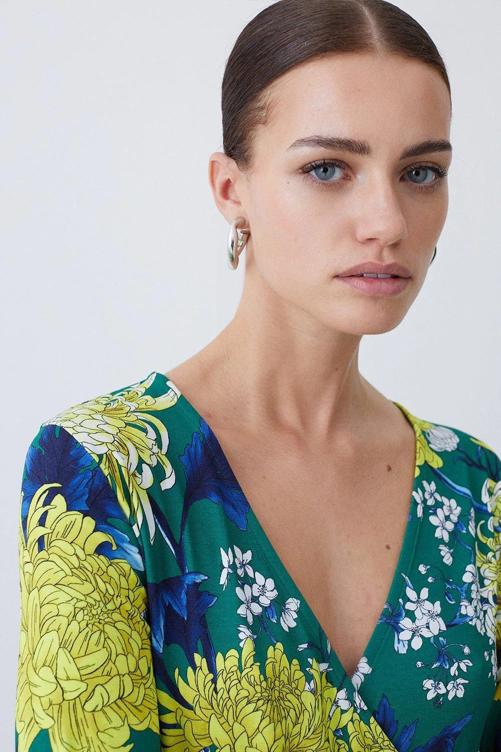 97% Viscose 3% Elastane. Wash with similar colours. Model wears UK 8 US 4. Model height approx 5″10.