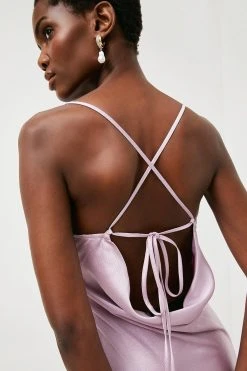 Nothing spells easy elegance quite like a satin midi dress. Look the part in this luxurious design, which skims curves in all the right places and features a slinky shape, slender straps and draped cowl detailing to show off polished skin to perfection.