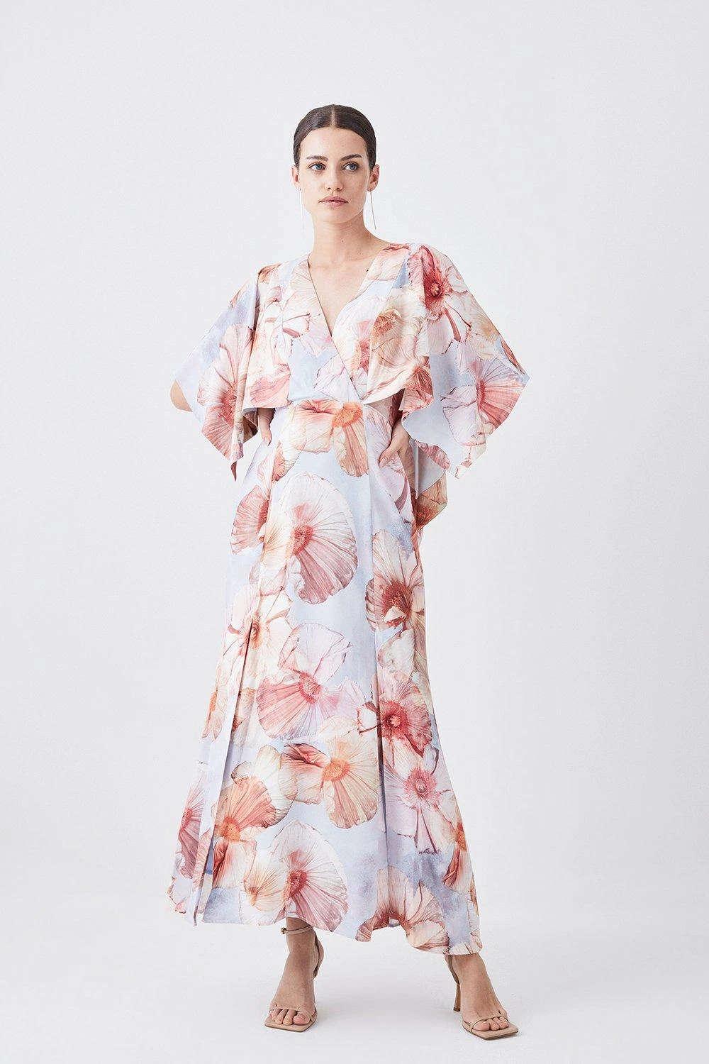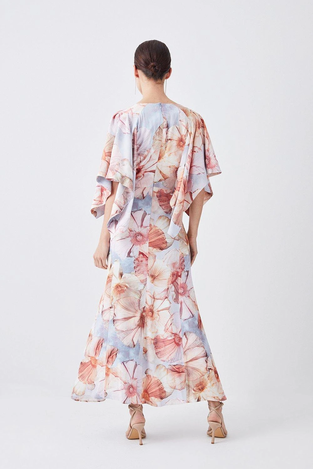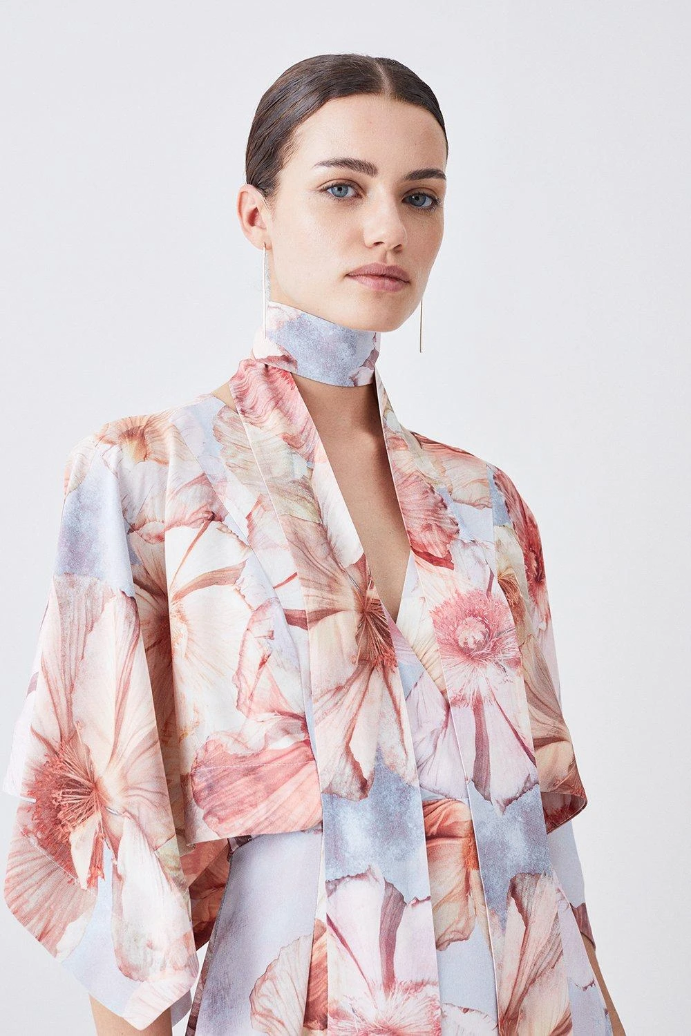Karen Millen Petite Satin Crepe Tie Neck Etched Floral Maxi Dress